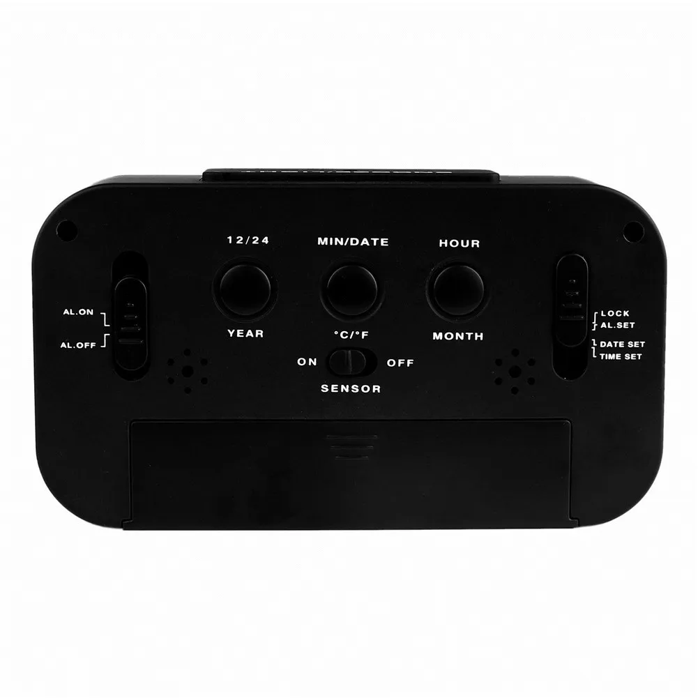 4. Простая Работа и настройки на задней панели, включая: Настройка времени и будильника, установка будней будильника, настройка времени Кнопка, выбор музыки, часов 12 или 24 часа, месяц и день, подсветка Датчик и по Цельсию или температура по Фаренгейту.