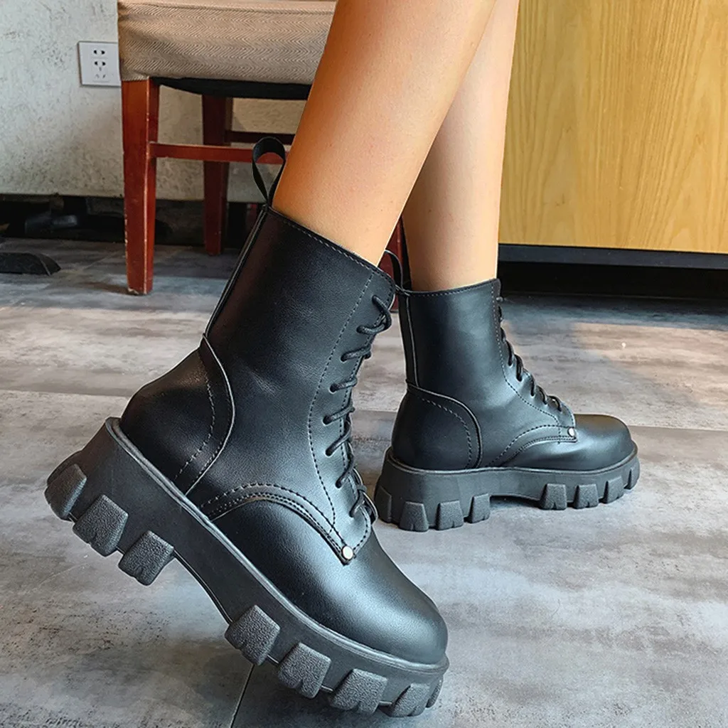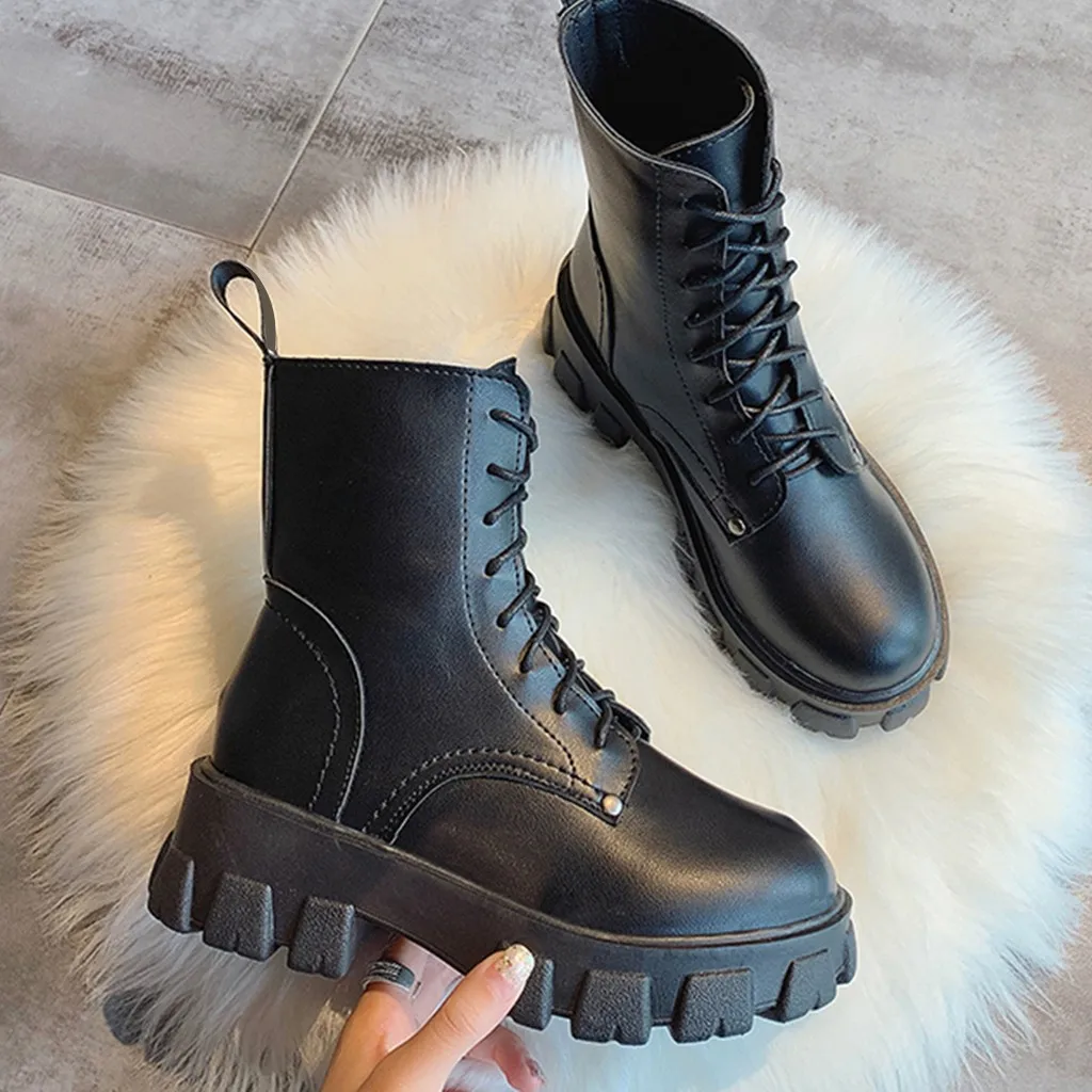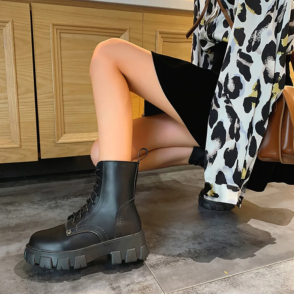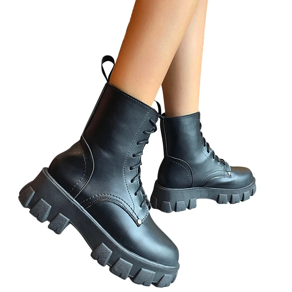 Модные женские зимние ботильоны на платформе со шнуровкой; крутые водонепроницаемые ботинки в стиле панк