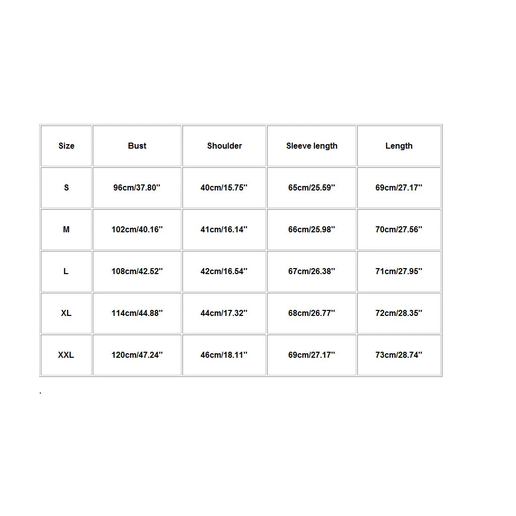 | XXL | 120 см/47,24'' | 46 см/18,11'' | 69 см/27,17'' | 73 см/28,74'' |