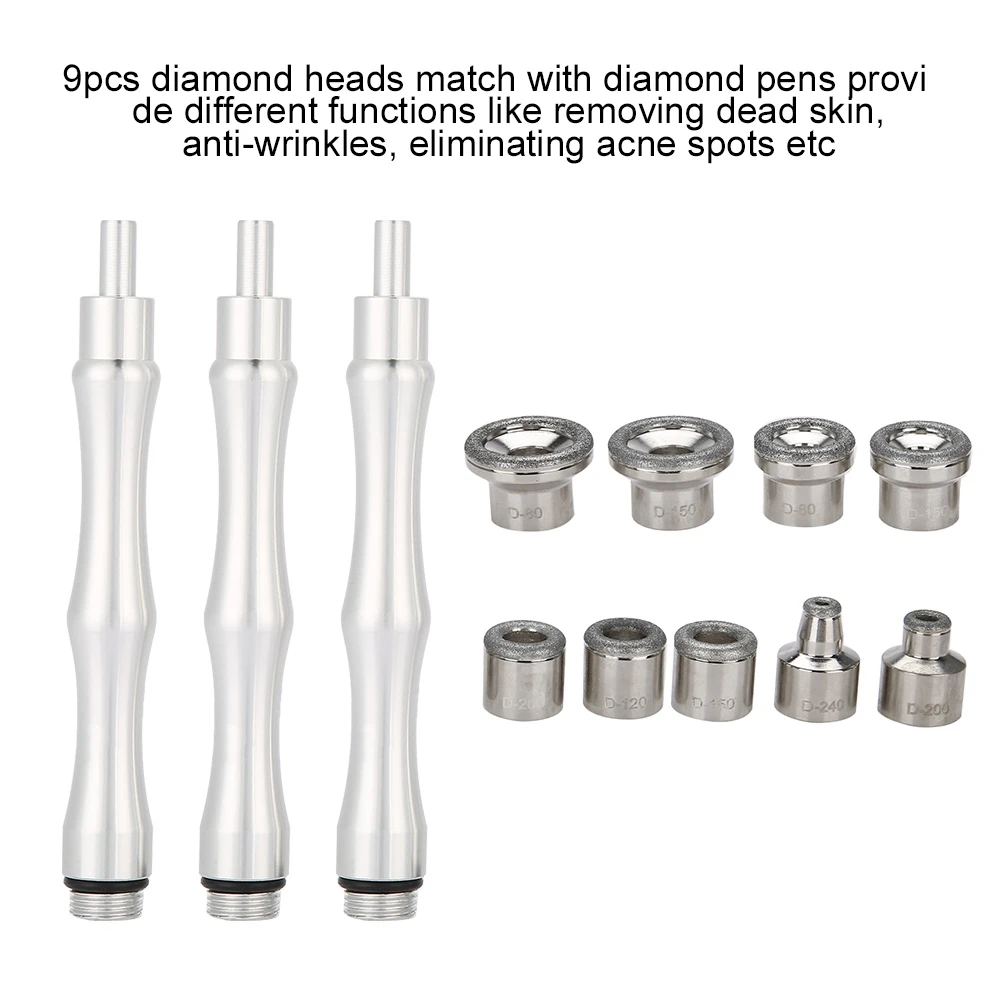 2. 9 алмазных головок сочетаются с ручки со стразами обеспечивают различные функции, такие как удаление омертвевшей кожи, анти-морщины, устранение прыщей и т. д.