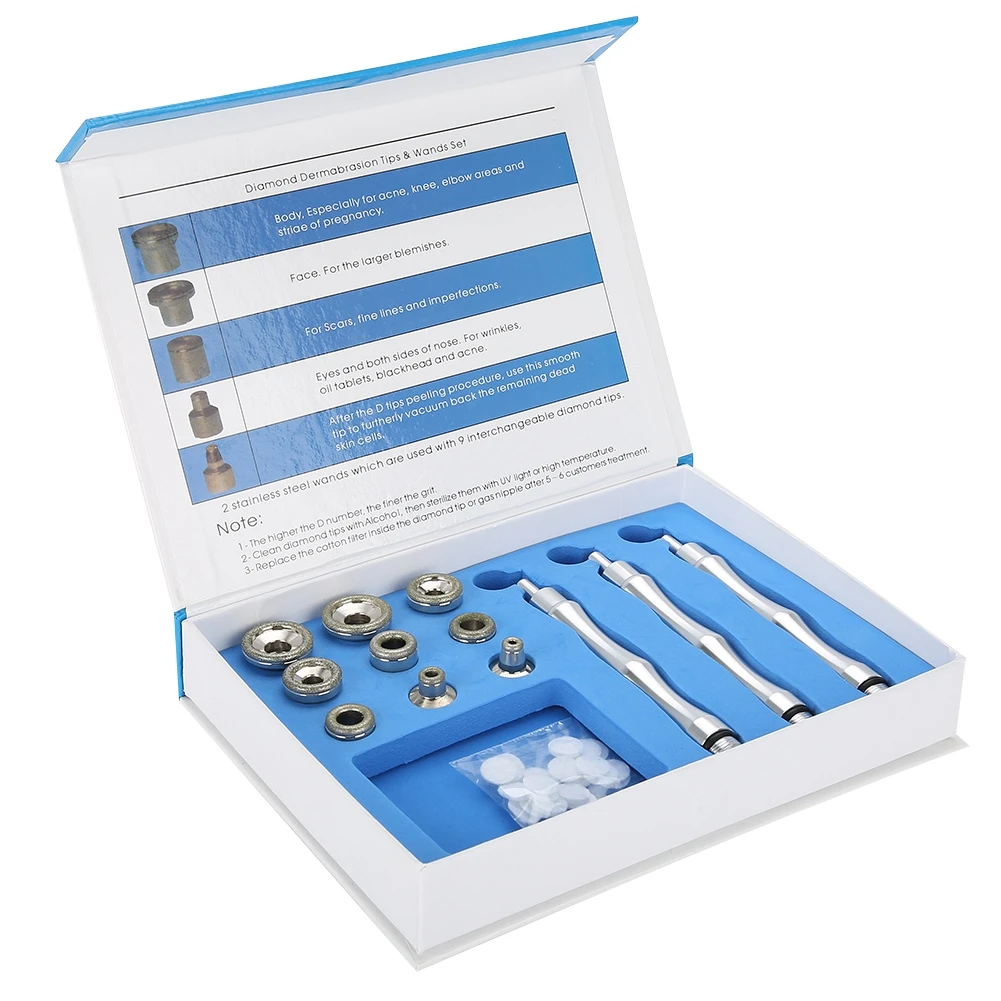 1 * коробка инструментов (3 * алмазные ручки для дермабразии, 9 * алмазные головки для дермабразии)