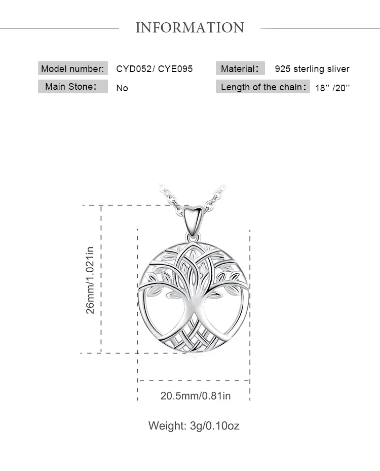 Eudora 925 стерлингового серебра Древо жизни кулон ожерелье для женщин модные ювелирные изделия