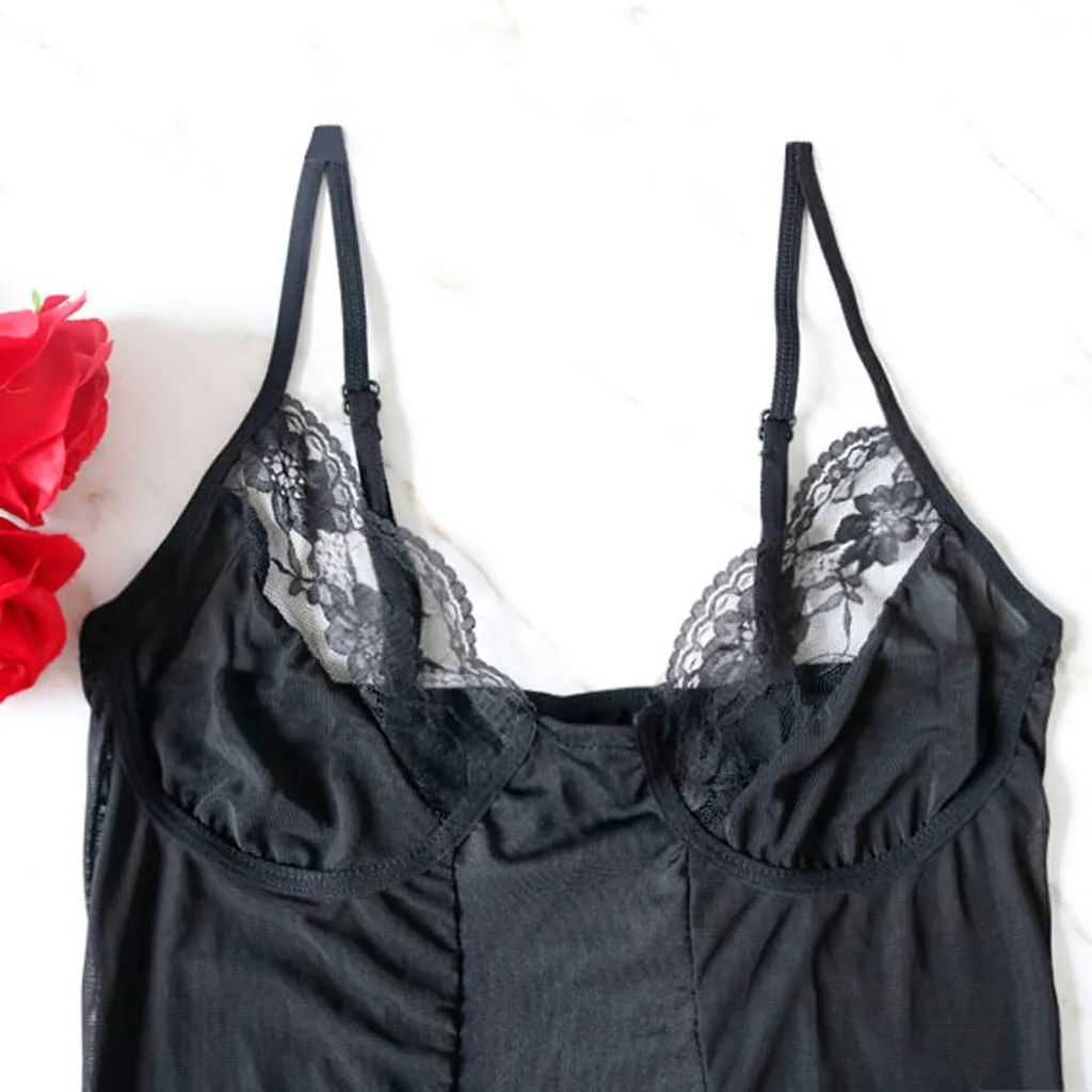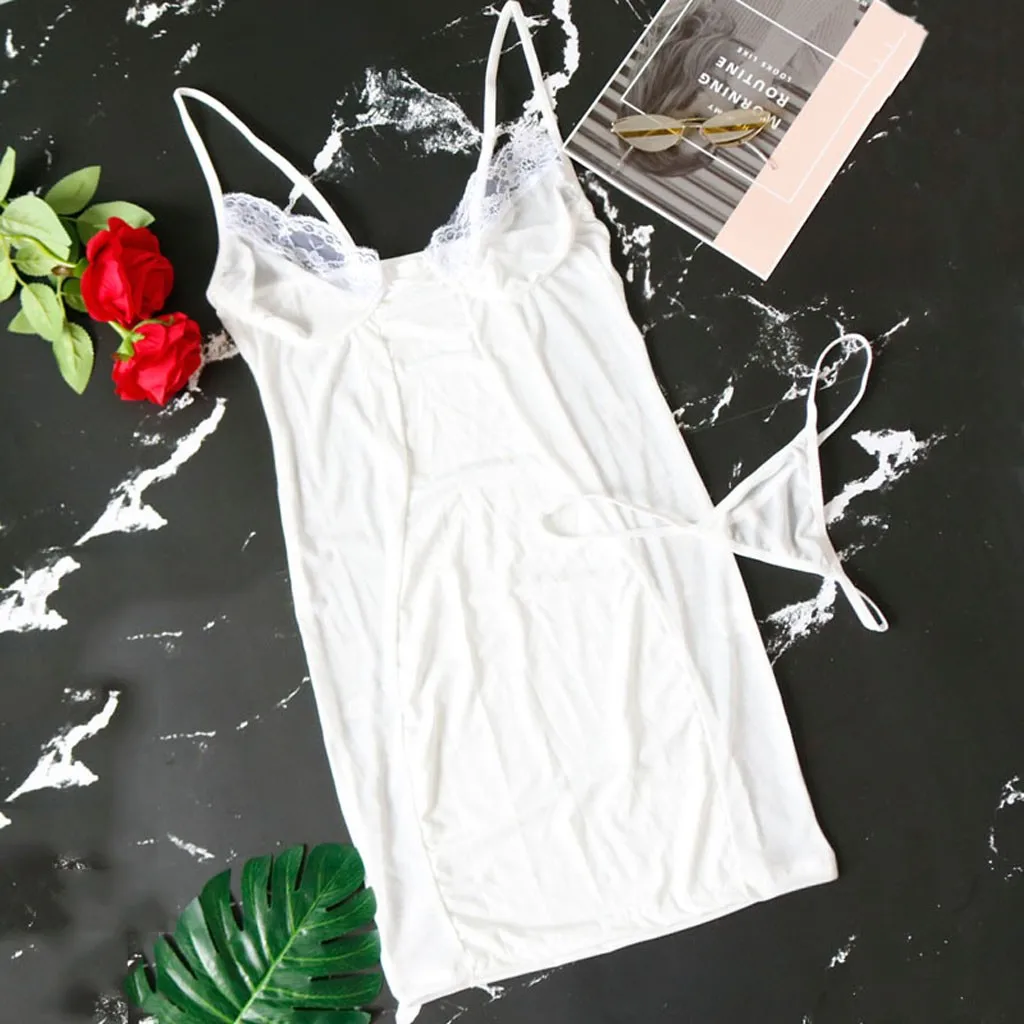1.Эта ночная рубашка соединена с сеткой и полиэфирной тканью и обшитая кружевом на груди.