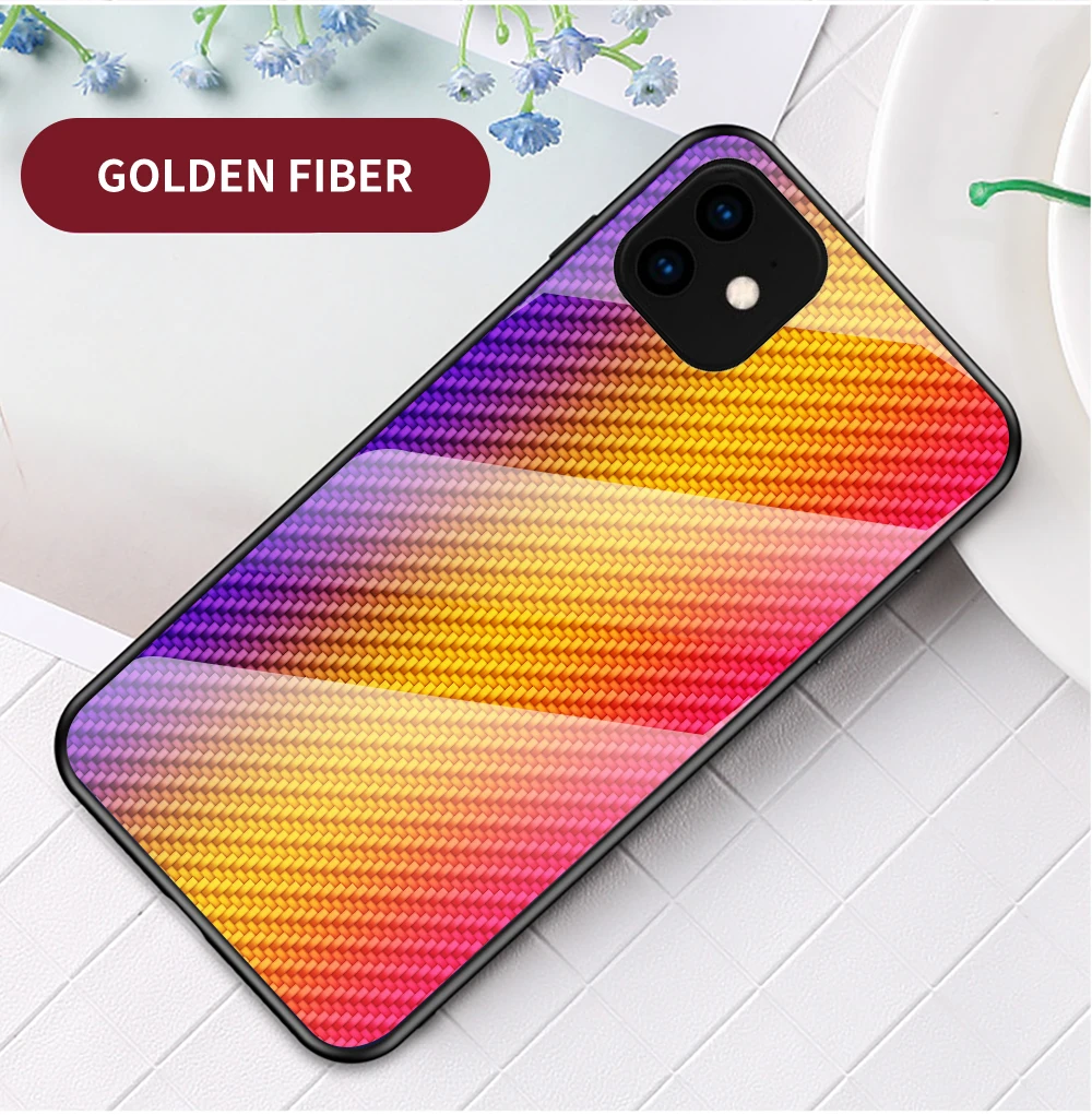 HAISSKYДля iPhone 11 Pro Max чехол из углеродного волокна с узором из закаленного стекла для iPhone X 10 XR XS Max 6 6s 7 8 Plus 5 5s SE чехлы для телефонов