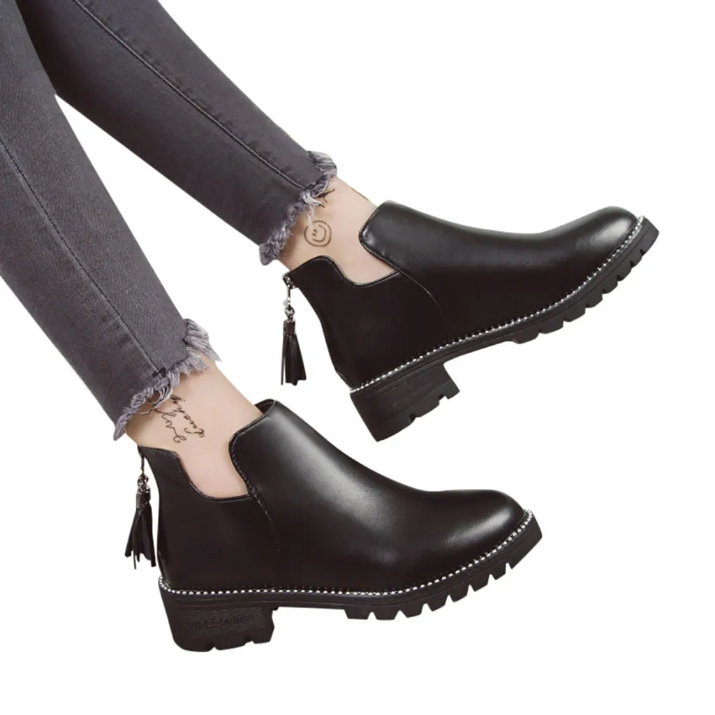 Женские ботинки челси на толстой подошве Черные ботильоны с круглым носком без