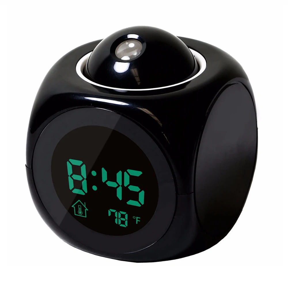 Эти часы имеют яркий светодиодный дисплей для яркого просмотра времени. Показывает время, дату, температуру, а также имеет функцию будильника. 5 видов звуковых сигналов, Встроенные большие динамики, чистый звук и подходящий размер. Время может быть переключено в течение 12/24 часов, а температура показывает переключение по Фаренгейту/Цельсию. Поддержка 24 часов в течение всего дня голосового отчета, поддержка 15 часов умной температуры голосового отчета. Поддерживает набор музыкальных будильников и поддерживает Повтор в течение 10 минут. Сохранение времени, Повтор и будильник поддерживают кнопочный переключатель, что очень удобно. Проекция четкая, звук громкий. Подсветка будильника для проектора: идеальное домашнее дополнение к настольному столу или тумбочке для детей, хороший домашний декор для детской или гостиной. Лучшие Подарочные часы для детей, друзей, семьи.