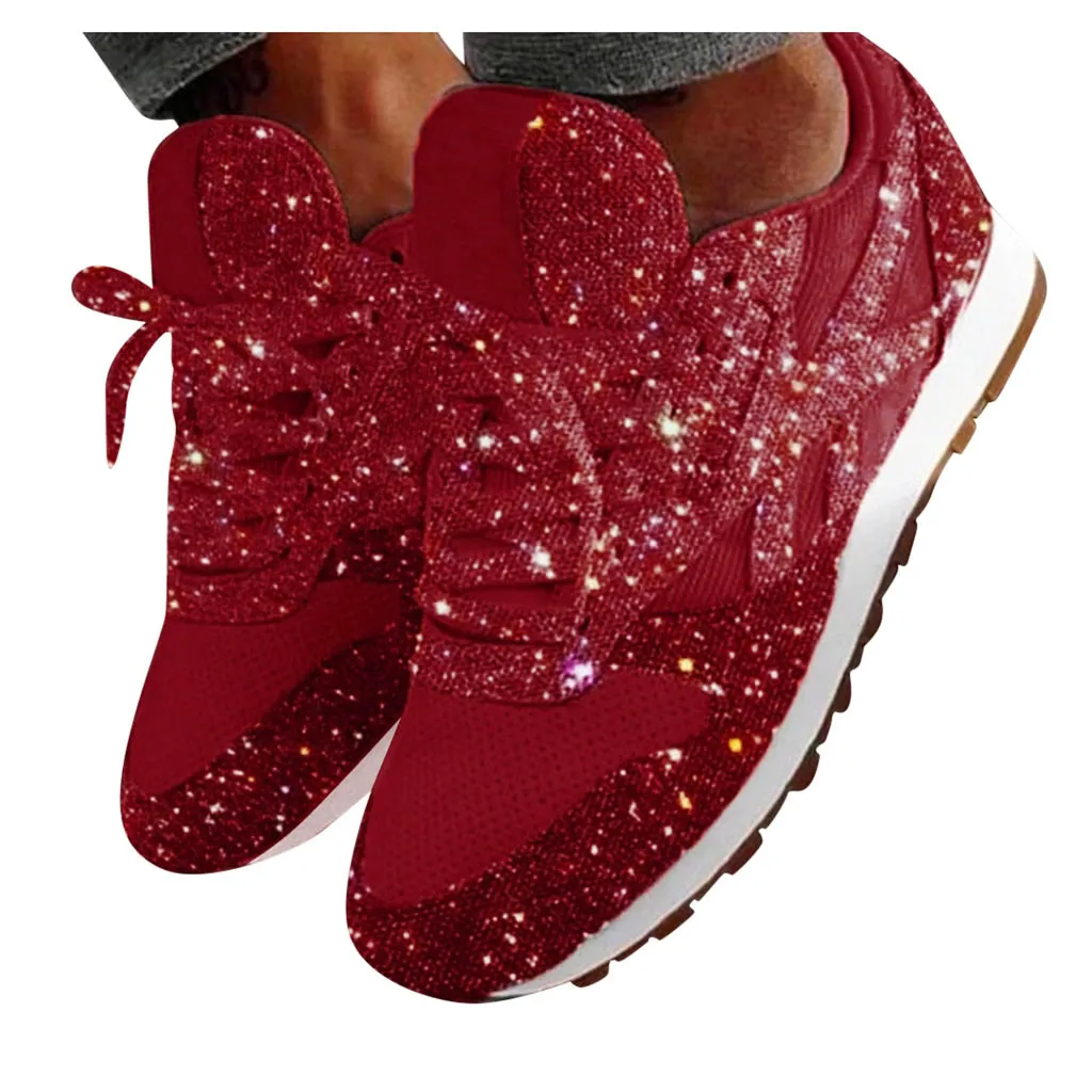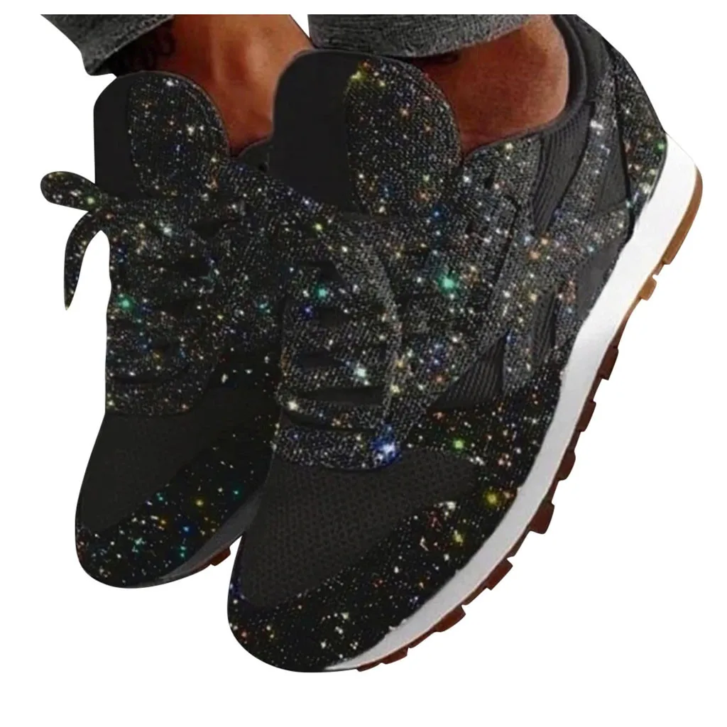 Женская модная Повседневная дышащая спортивная обувь со стразами и шнуровкой, кроссовки