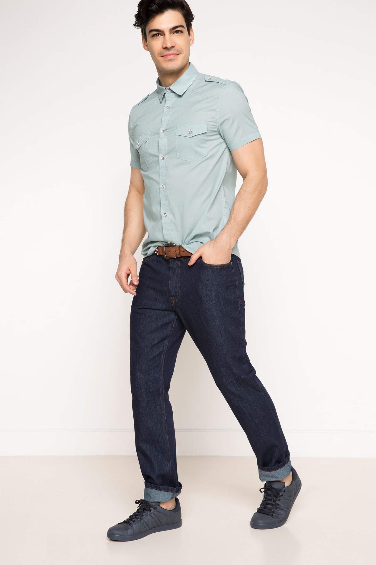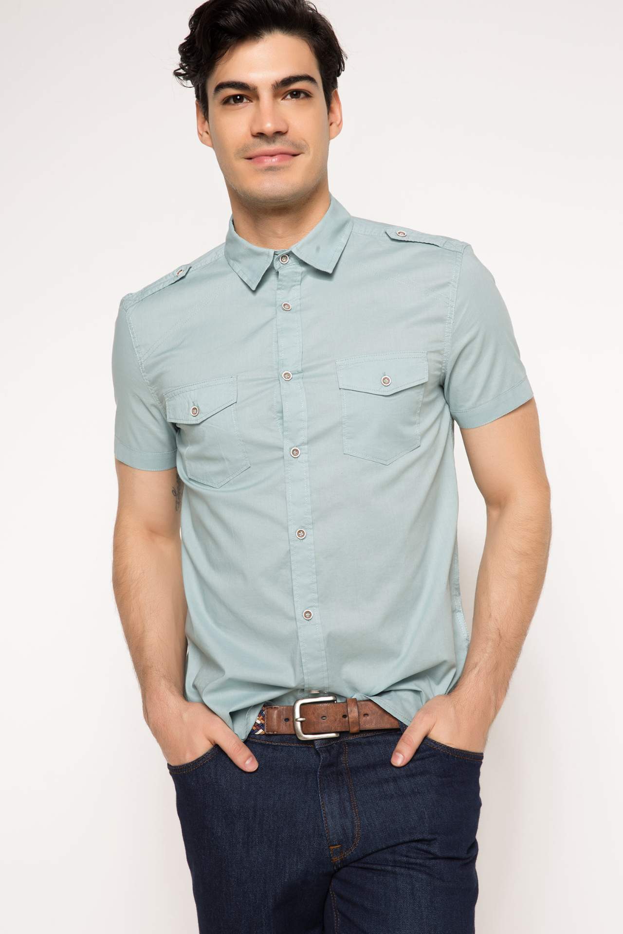 Мужская Однотонная рубашка 2021 Весенняя клетчатая с длинным рукавом блузка
