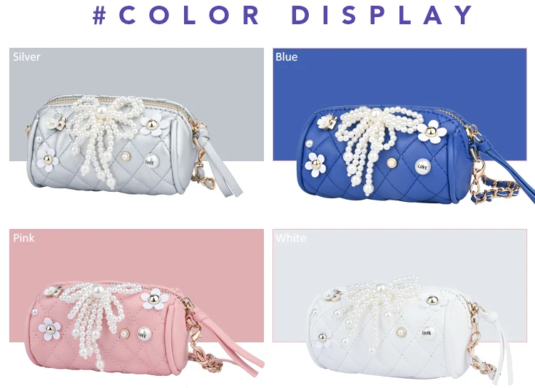 Size:13cmx9cmx7cm Feature: ♥ Exquisite Design: pearl,bow,chain decoration women bag ♥ Charming Looking: well match with dress, skirt, casual and countryside clothes, make you feel gorgeous, elegant and fashion. ♥ Easy to Carry: breakthrough cumbersome, handy convenient. ♥Attractive Color:Blue,PInk,Black,White,Red,Yellow,Silver,Gold ♥ Attention Please: due to monitor settings, monitor pixel definitions, we can not guarantee that the color you see on your screen as an exact color of the product