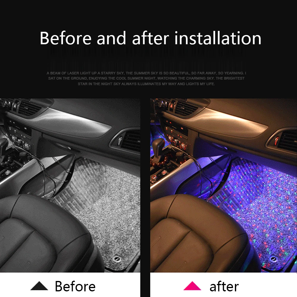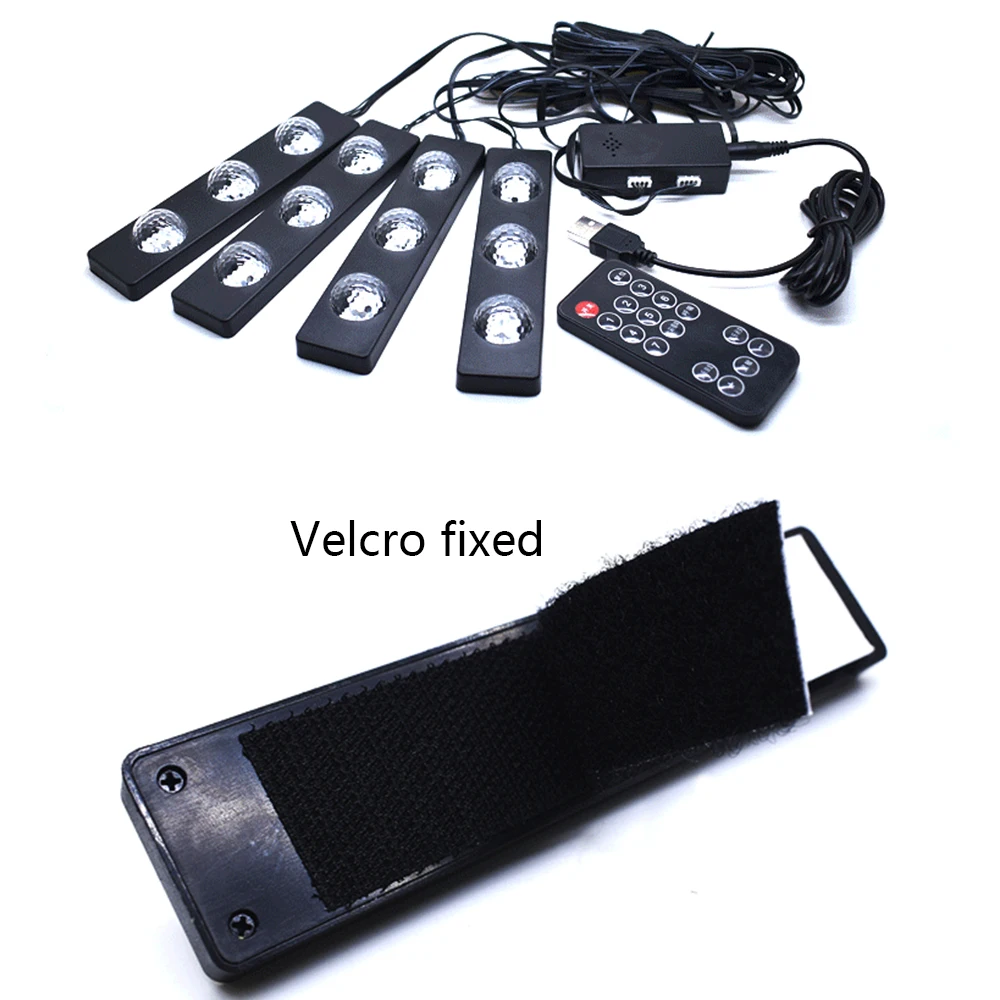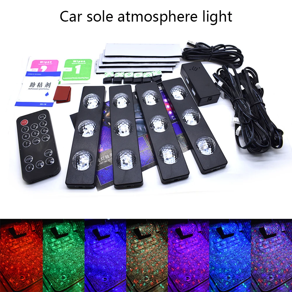 Декоративные Автомобильные фары пульт дистанционного управления USB СВЕТОДИОДНЫЙ свет атмосферного Света Красочная Музыка Звуковой с голосовым управлением лампа для салона автомобиля ножной свет