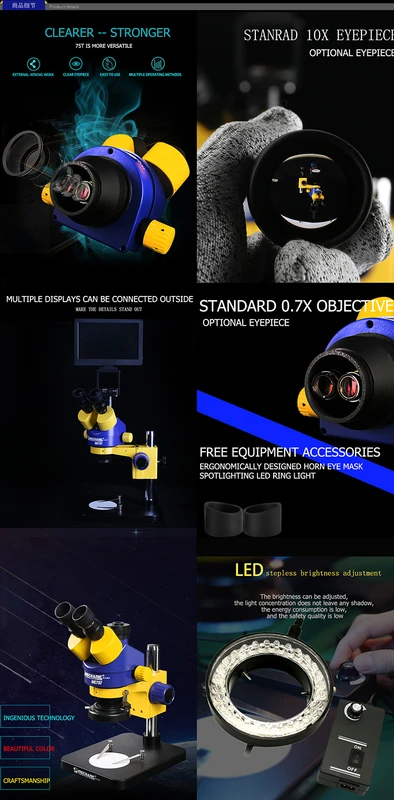 Просмотр ГоловкаБинокулярная головкаНаклонный при 45 градусах,Непрерывное увеличение объектива 0.7x-4.5x,Межслойное расстояние 54-76 мм,Двусторонняя видимость регулируемая