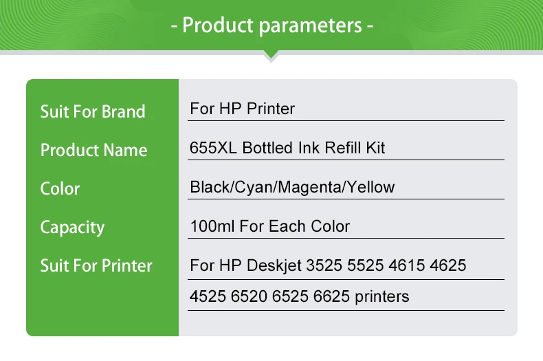 1 шт. х 100 мл краситель для бутылокHP 655Черный цвет.