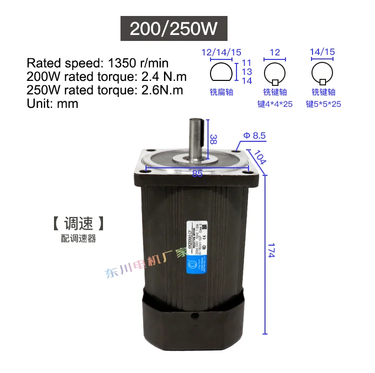 200 Вт/250 Вт мотор не имеет Примечания диаметр вала, по умолчанию диаметр вала 15 мм.