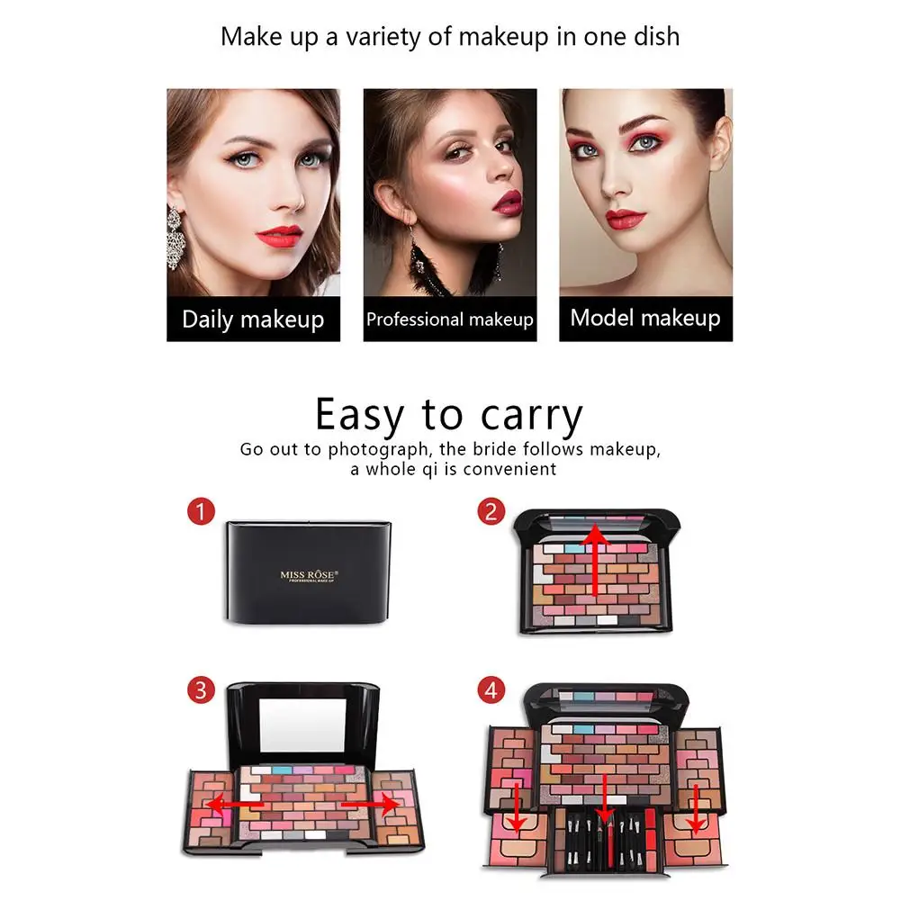 Практичный для использования: содержит тени для век, блеск для губ, румяна, контурную пудру для удовлетворения ваших различных потребностей в макияже.
