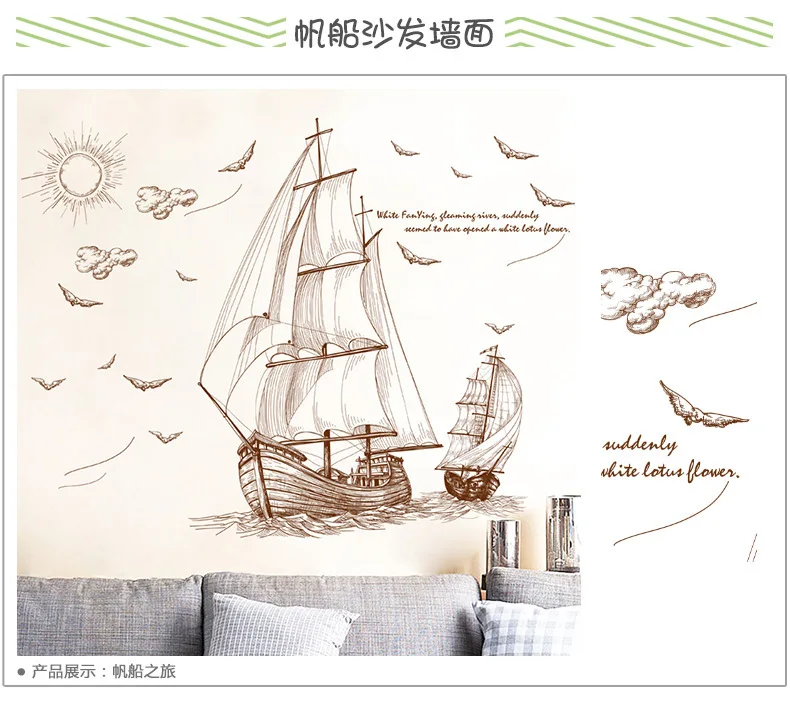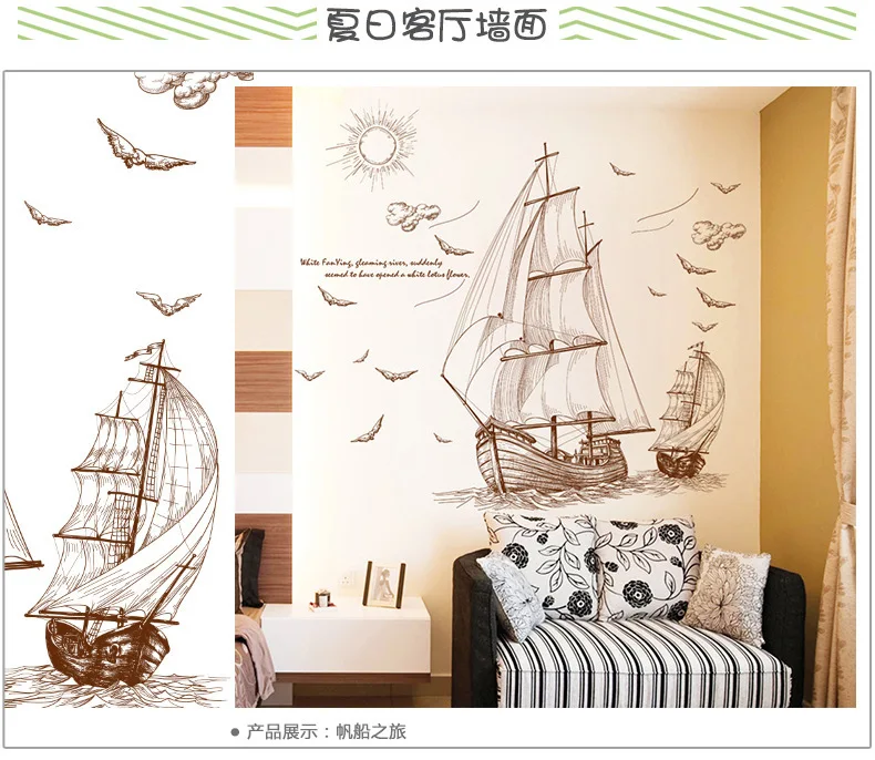 Креативный ПВХ парусник настенные наклейки сделай сам, снимаемые гостиной коридора украшения спальни натюрморт самолет наклейки на стену