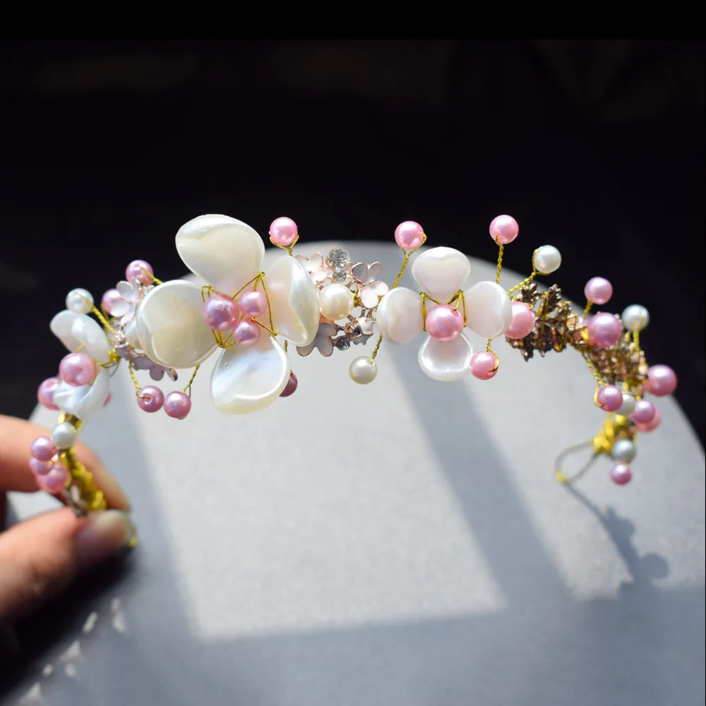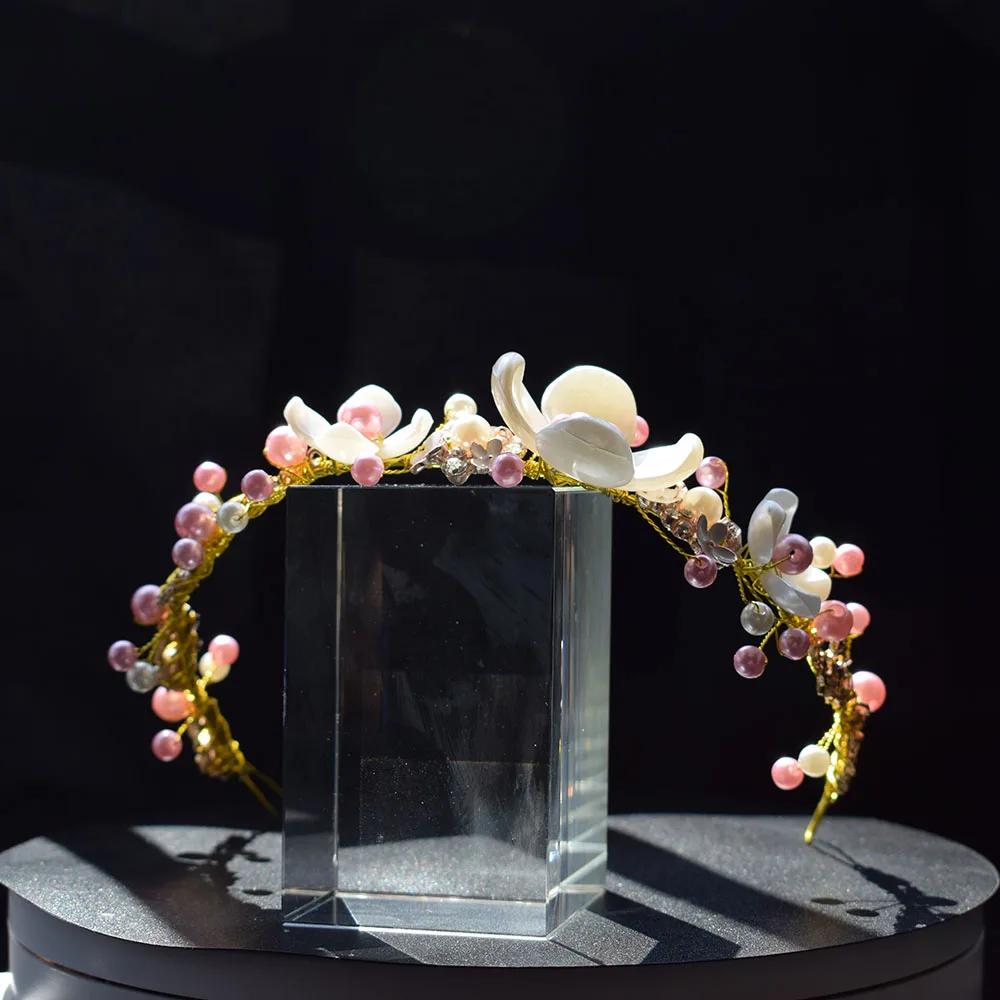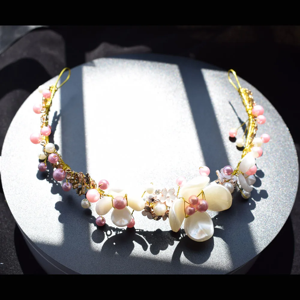 Женский головной убор ручной работы для свадьбы с розовыми и белыми бусинами и цветочными листочками, дизайнерский головной убор, свадебные аксессуары для волос