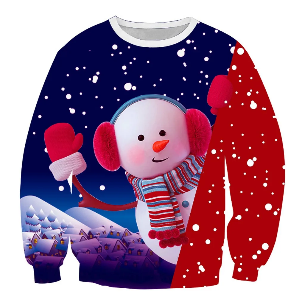 Рождественский пуловер унисекс с 3D принтом и длинными рукавами Свитер с круглым вырезом; Блузка