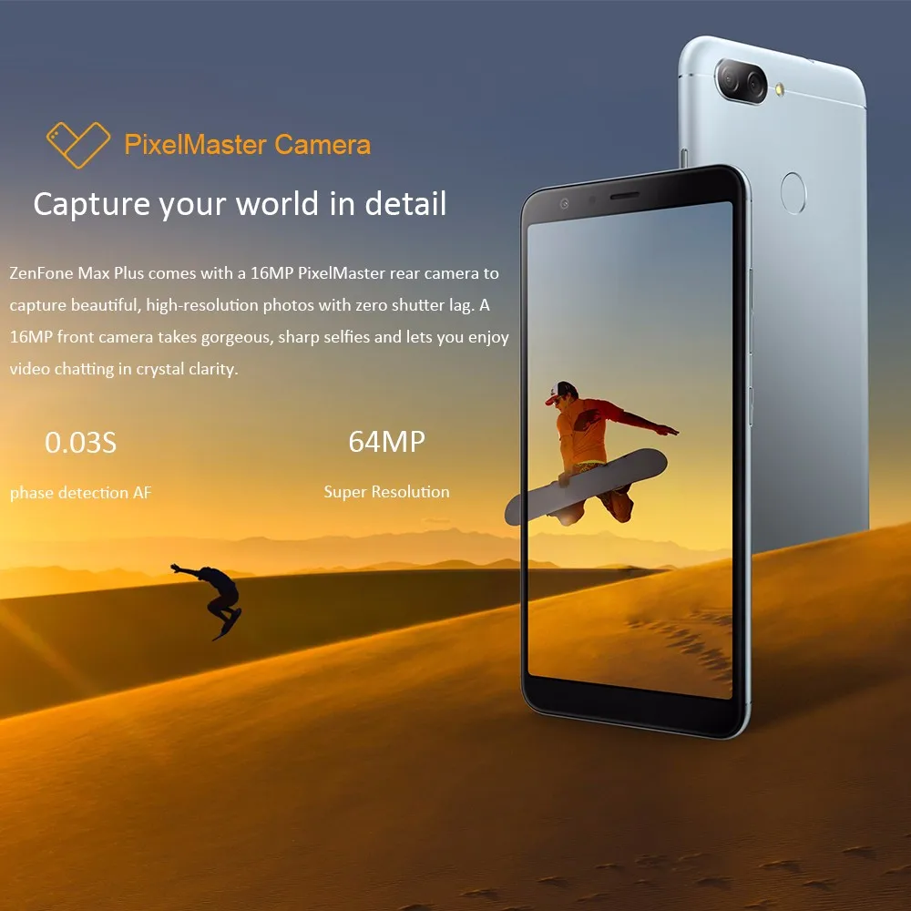 ASUS Zenfone Max Plus 5,7 "полный дисплей MTK6750 Восьмиядерный процессор 4 Гб Оперативная память 64 Гб Встроенная память 4130 мАч батарея двойная задняя камера с двумя сим-картами ZenUI ОС отпечатков пальцев OTG тройной слотов для карт
