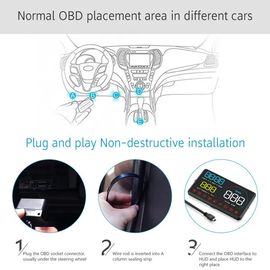 Синий белый A9 HUD 5.5in Универсальный Автомобильный дисплей ODB2 система автомобильной диагностики