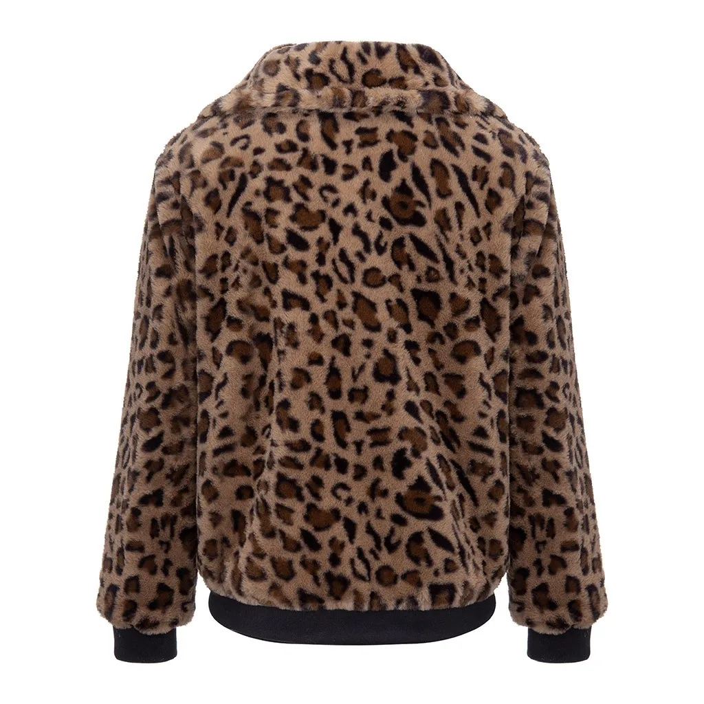 Женская леопардовая куртка с искусственным мехом теплая зимняя одежда оверсайз на молнии куртки