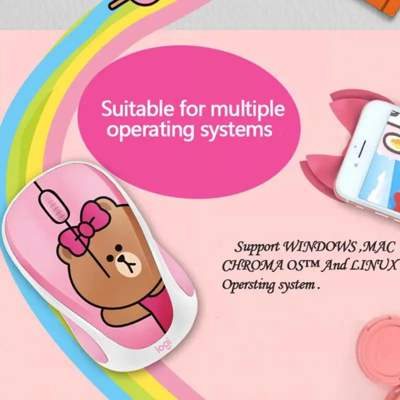 Характеристики: Бренд: Logitech Модель: LINE FRIENDS Тип: Беспроводная мышь (встроенный аккумулятор) Подключение к компьютеру: беспроводной Подходящие модели: ноутбук Количество клавиш: 3 Интерфейс: USB Беспроводной Частота передачи: 2,4 ГГц Поддержка эргономики: Да Рабочее расстояние: 10 м/32,81фт Режим работы: оптический Направление колеса: сенсорное колесо Особенности: игровая мышь, мини-мышь Цвет: синий (медведь), розовый (кролик), светильник розовый (медведь), оранжевый (утка) Системные требования: для Windows 10 или выше, Windows 8, Windows 7, Windows Vista, Mac OS X10.5 или выше, Chrome OS, Linux Kernel 2,6 +, USB порт Примечания: 1. Возможны незначительные отклонения в размере из-за ручного измерения, различных методов измерения и инструментов. 2. Изображение может не отображать фактический цвет товара из-за различного фотографирования светильник, угол и дисплей монитора. 1 usb-приемник 1 х Руководство