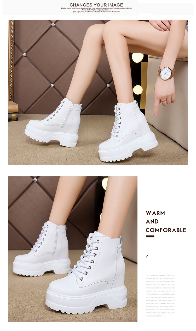 Новинка 2019, женские ботинки на платформе, увеличивающие рост, водонепроницаемые кроссовки, зимние ботинки на высоком каблуке 8 см, кожаные кроссовки на толстой подошве