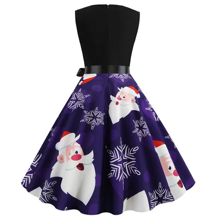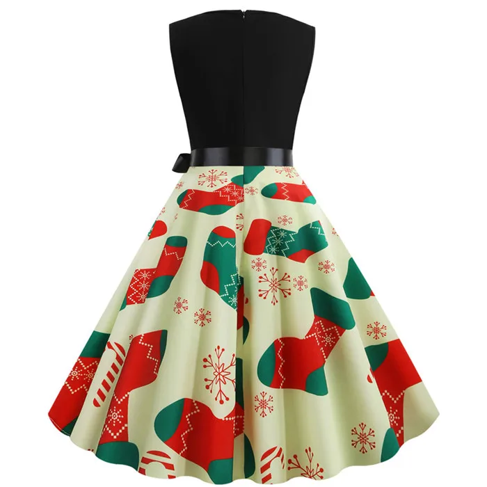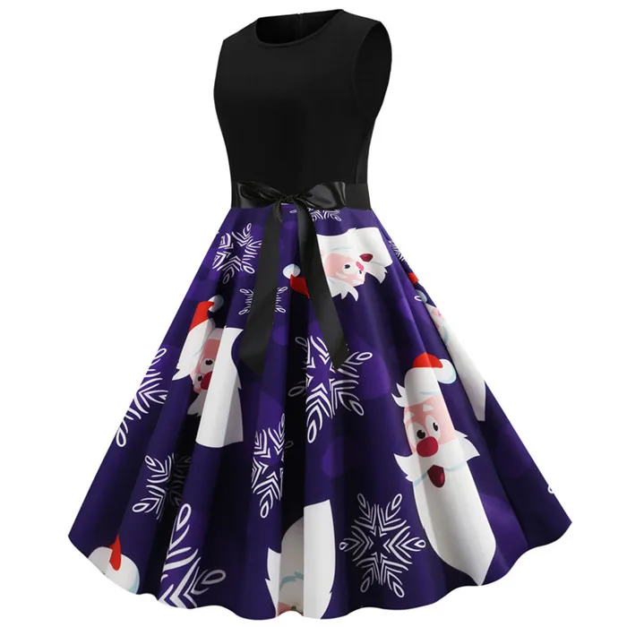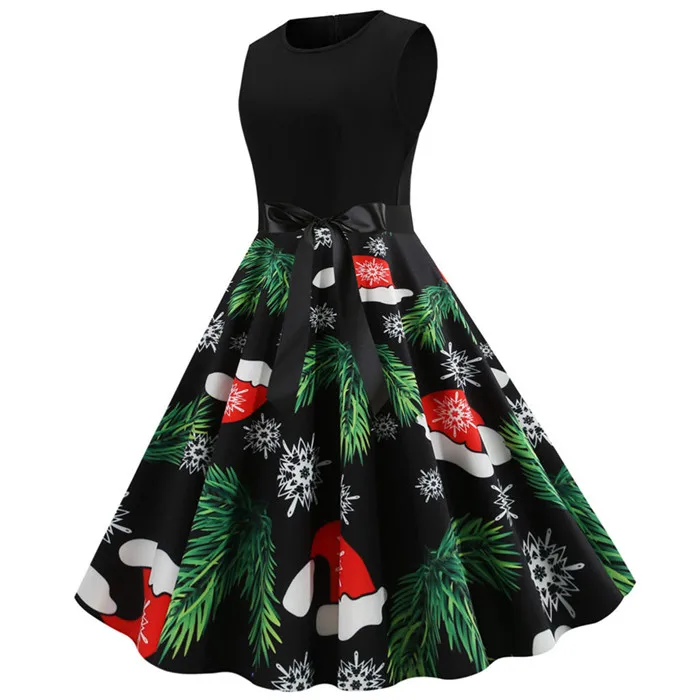 Женское платье на Рождество 1950 s винтажное несколько стилей рождественское платье с принтом для вечеринки без рукавов 2019 Новогоднее плиссированное платье 5