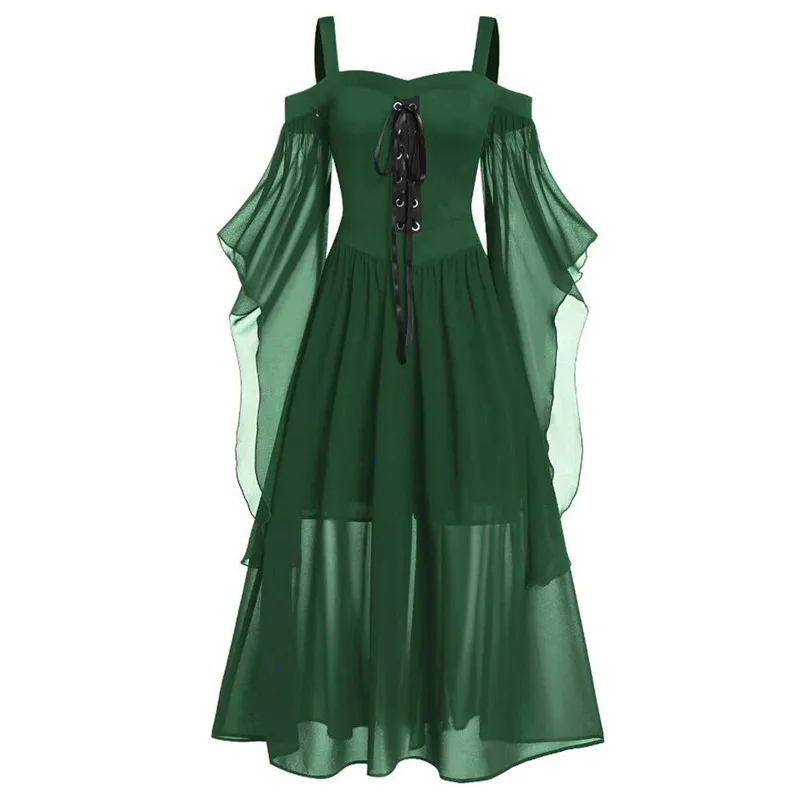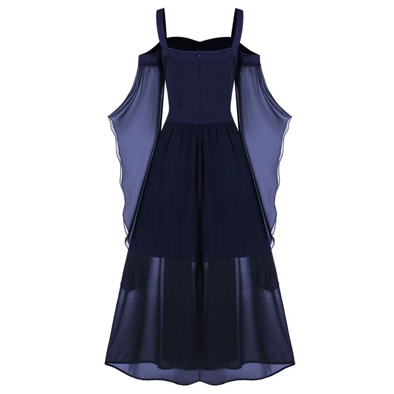 Женское платье на Хэллоуин, большие размеры, модное винтажное Сетчатое платье с открытыми плечами и рукавами-бабочками, повседневное платье, 2019 новое поступление