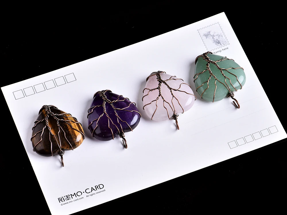 1 шт. натуральный с украшением в виде кристаллов минеральной украшение в форме сердца Форма Древо жизни кулон Модные парные подвески, ожерелья DIY, подарок, ювелирное изделие