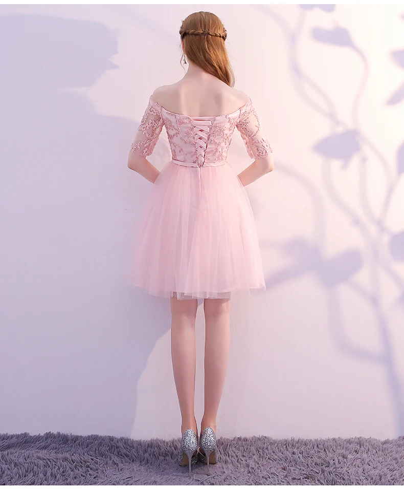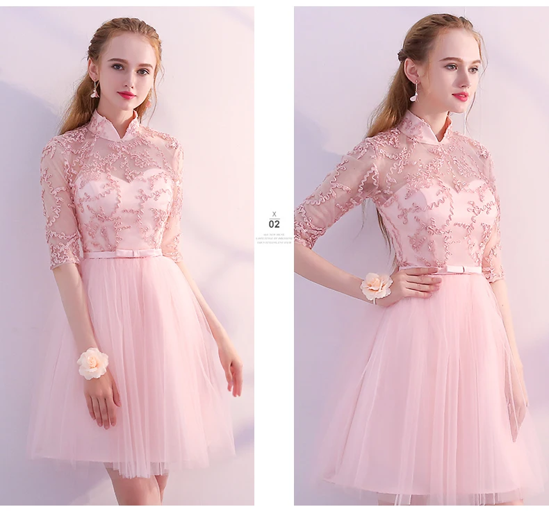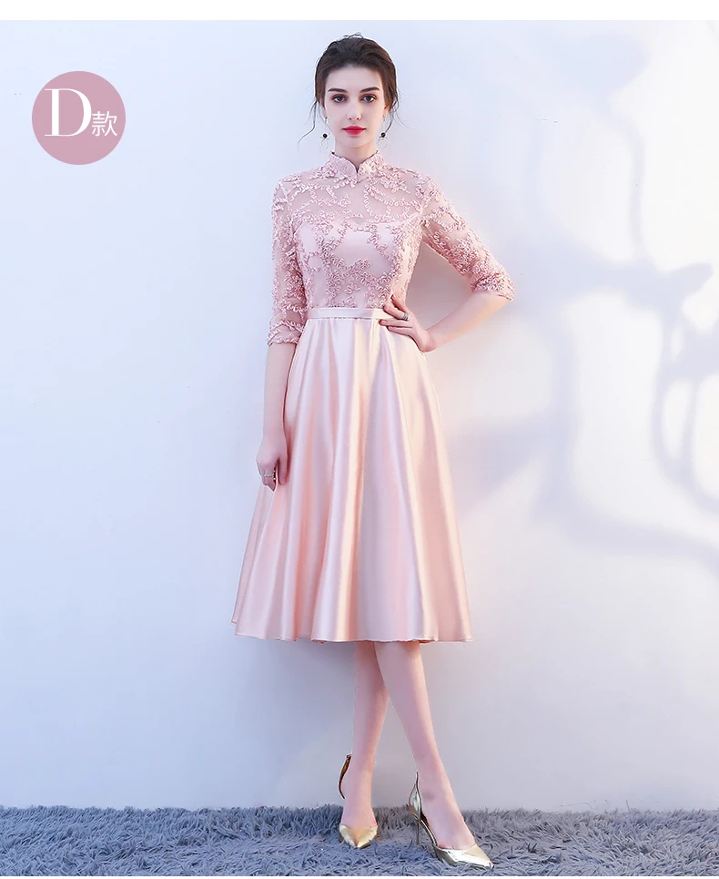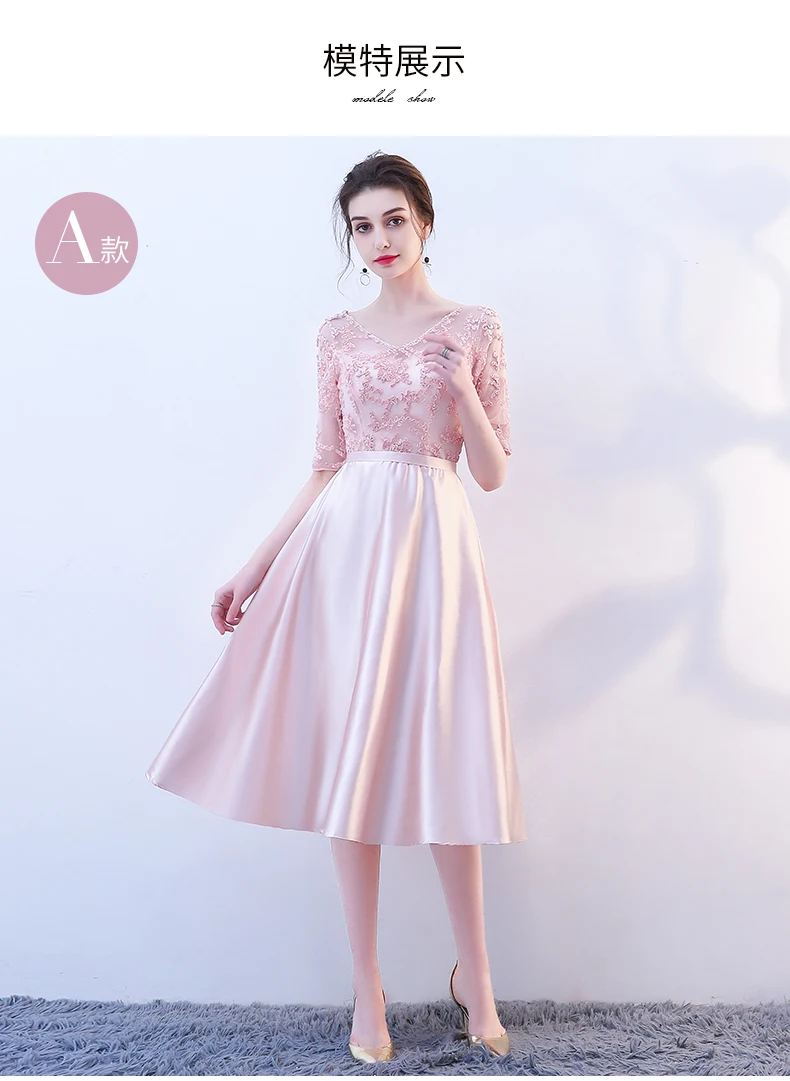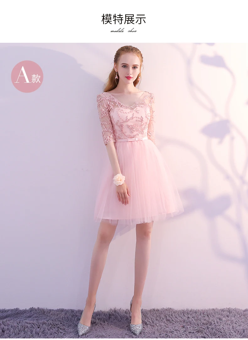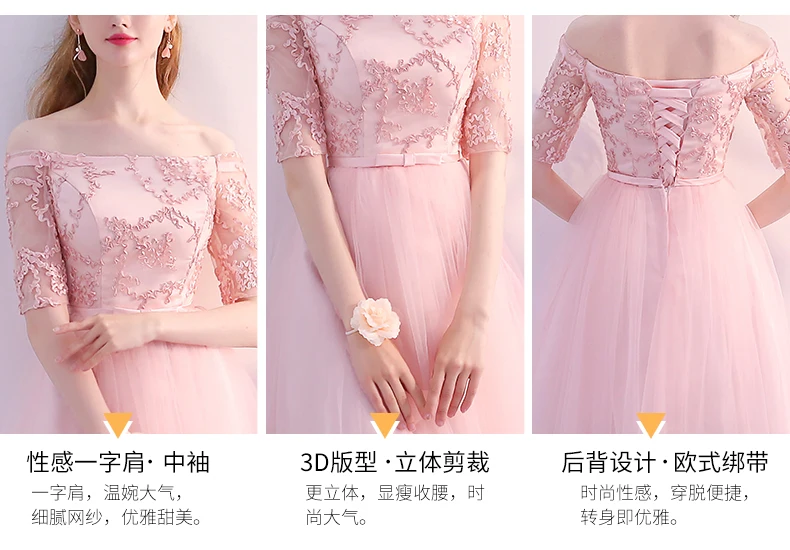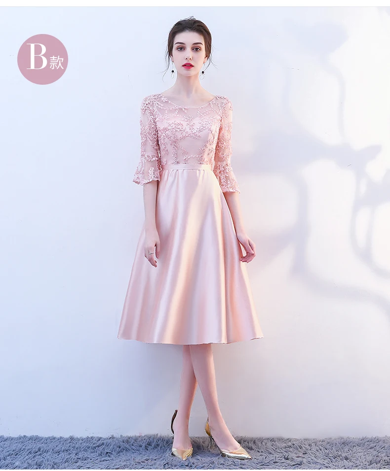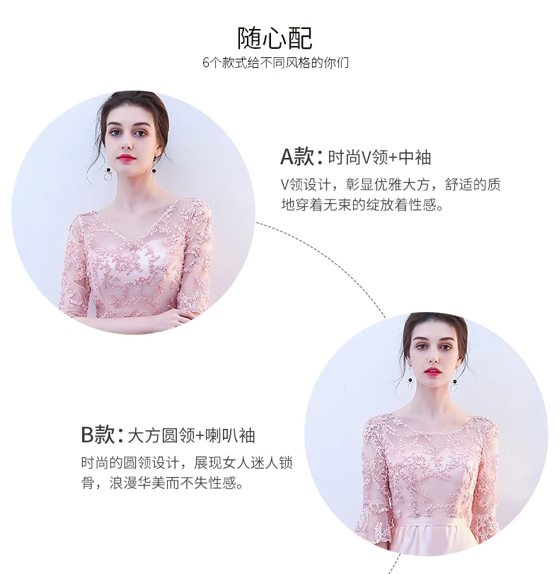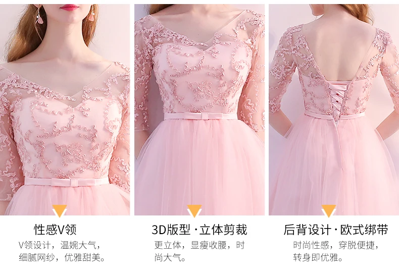 Pink Evening Dresses A-line 3 4 Sleeves Lace Beading Prom Party Dress Gown Vestido De Festa SD01 | Свадьбы и торжества
