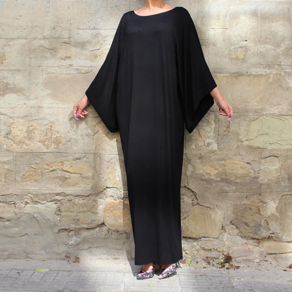 Женское модное мусульманское Ретро Элегантное повседневное однотонное длинное платье с длинным рукавом