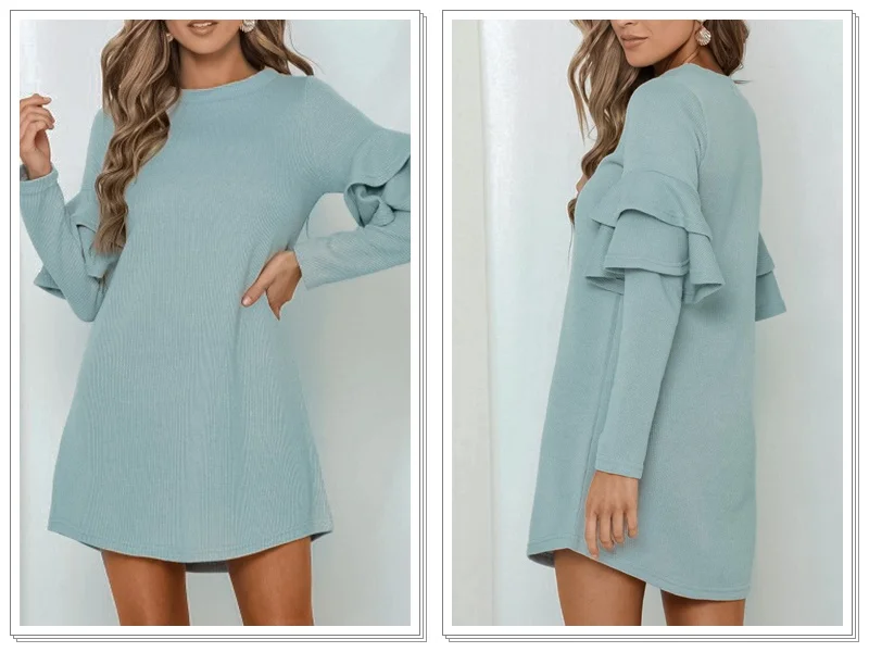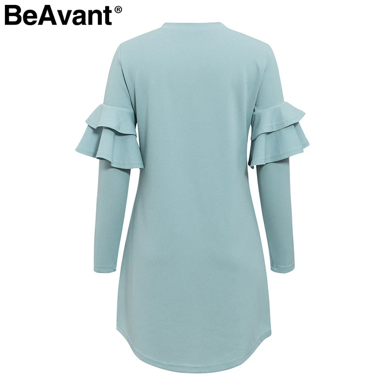 BeAvant Элегантная трикотажная Мини-юбка с оборками Женская осенне-зимняя шикарная Рабочая юбка с длинным рукавом однотонное облегающее вечернее платье