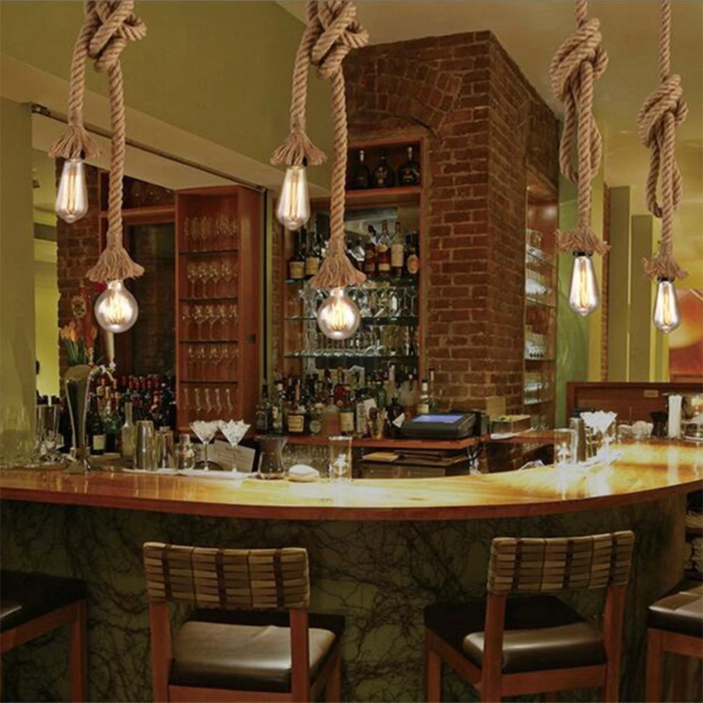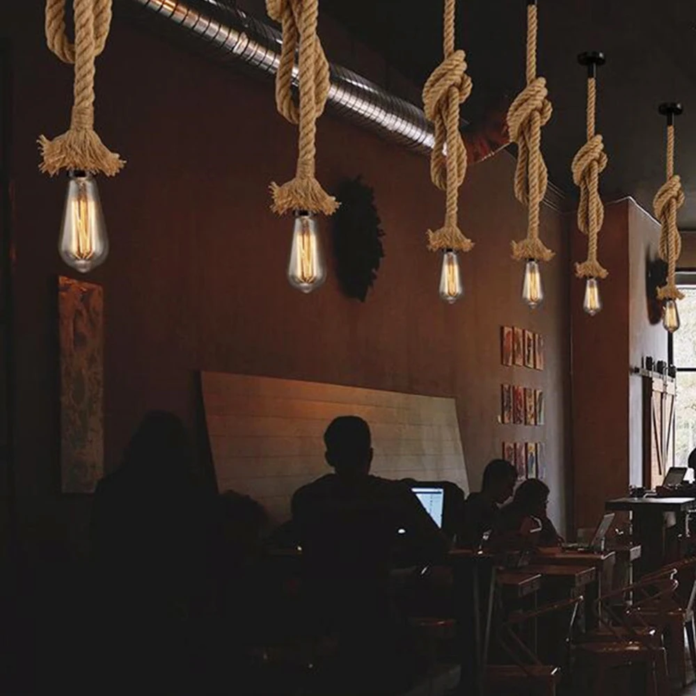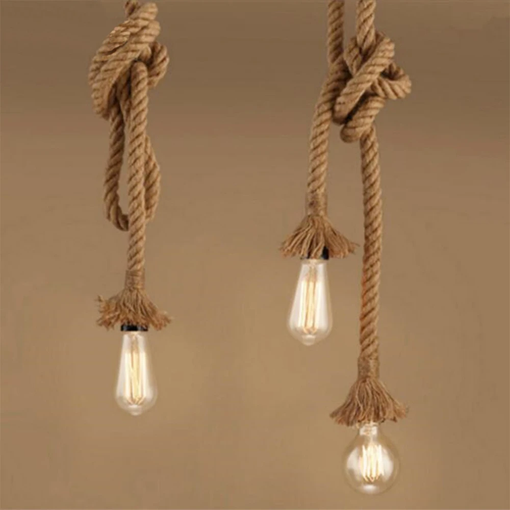 Винтажный подвесной светильник из пеньковой веревки AC90-260V E27 Лофт творческая личность промышленный подвесной светильник для ресторана кофе