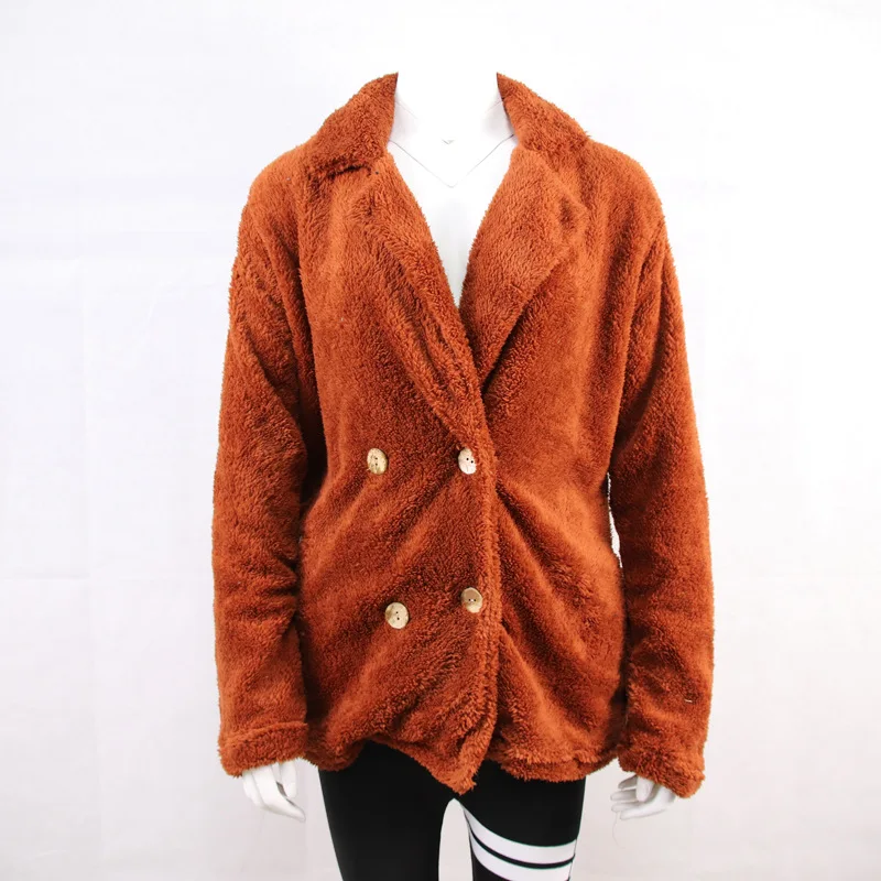 Женская теплая куртка, осенне-зимнее пальто, Классическая двубортная верхняя одежда, свободные пальто из искусственной овечьей шерсти, пальто, топы размера плюс