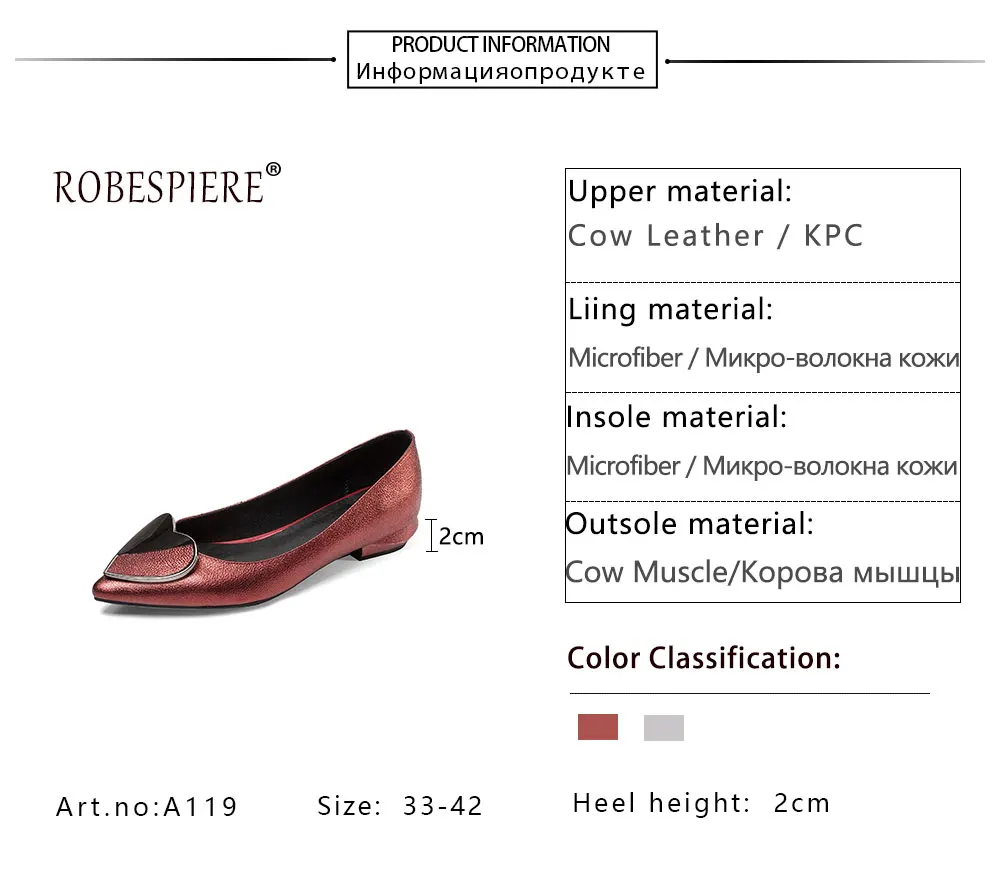 Женская обувь на плоской подошве ROBESPIERE, красная повседневная обувь из натуральной кожи с острым носком, без шнуровки, на низком каблуке, большие размеры, A119, осень 2019