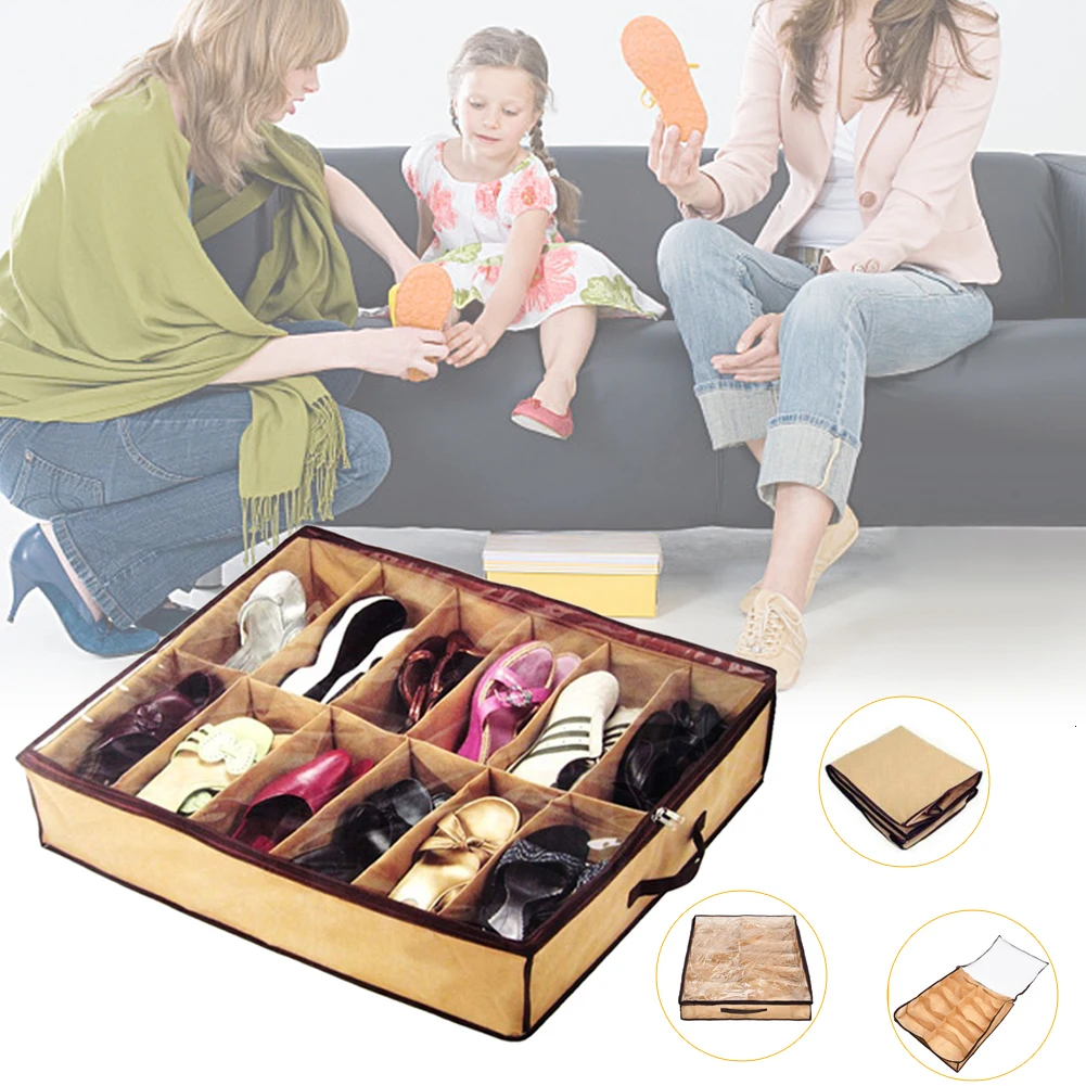 12 пар под кровать органайзер для обуви контейнер для хранения с держателем шкаф коробка сумка