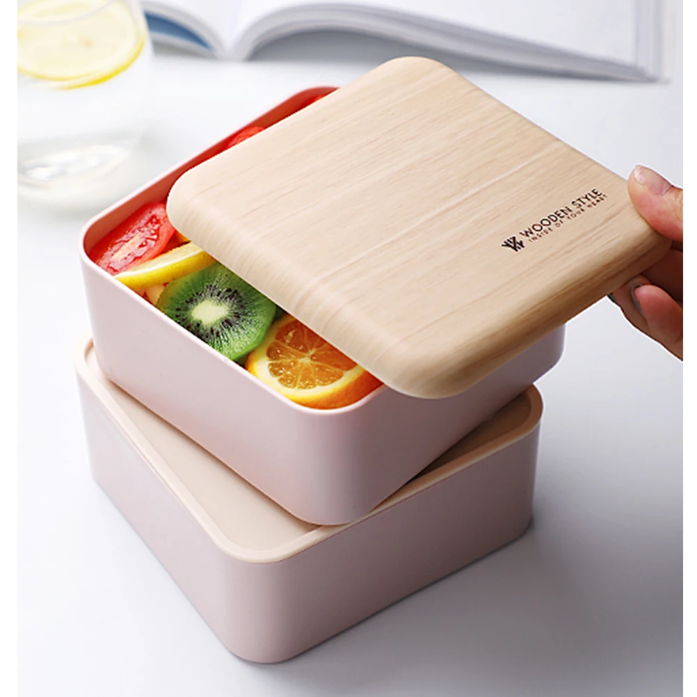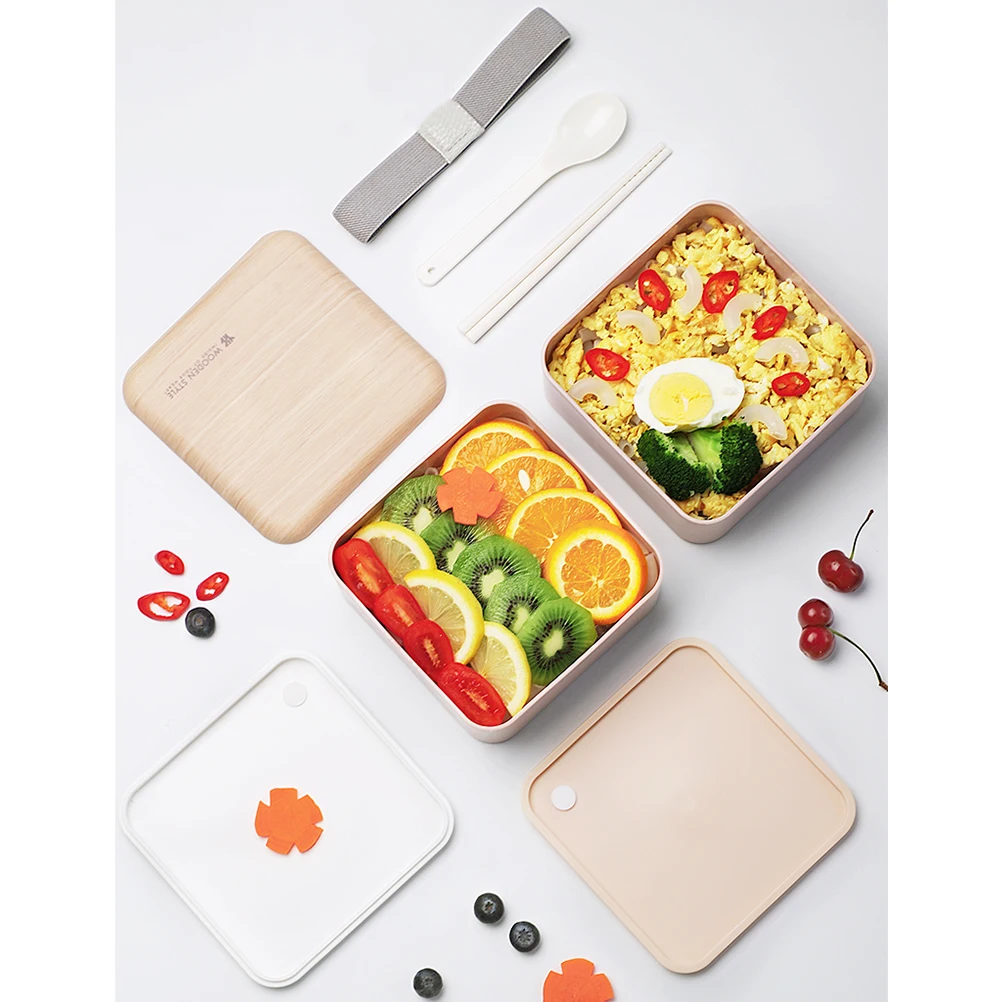 Двухслойная квадратная деревянная коробка для ланча, переносная крышка, микроволновые Bento коробки, детский пищевой контейнер, коробка для хранения, переносная коробка для пикника
