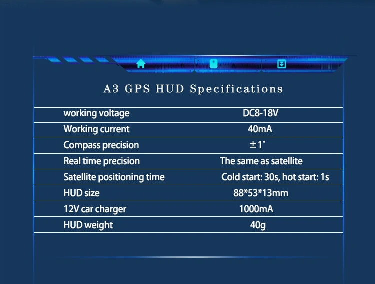 Дисплей: скорость транспортного средства, в режиме реального времени, компас, расстояние и время вождения, напряжение, номер satellie Будильник: скоростная сигнализация GPS автомобильный HUD поддерживает все автомобили (когда вы не имеете представления о интерфейсе даты Вашего автомобиля, вы можете выбрать GPS HUD