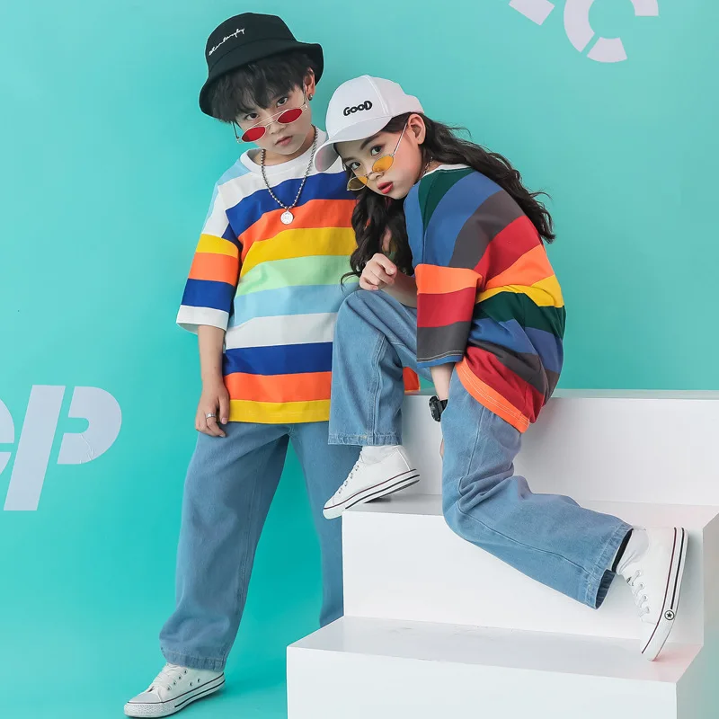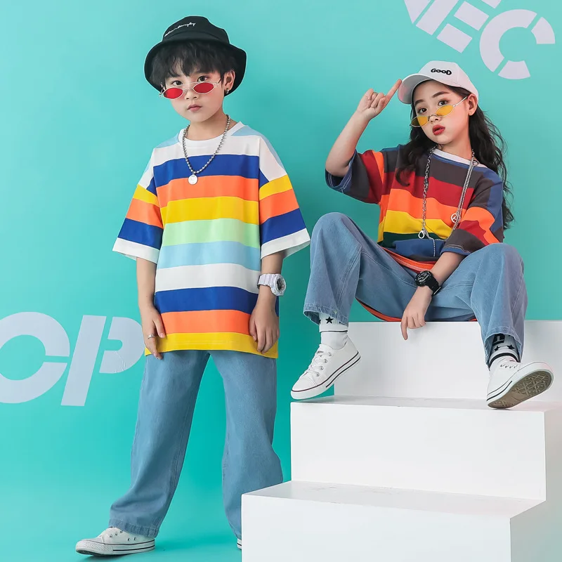 Детские танцевальные костюмы в стиле хип-хоп; Новая Детская уличная Одежда для танцев; Одежда для выступлений в стиле джаз; Модный современный танцевальный костюм для соревнований