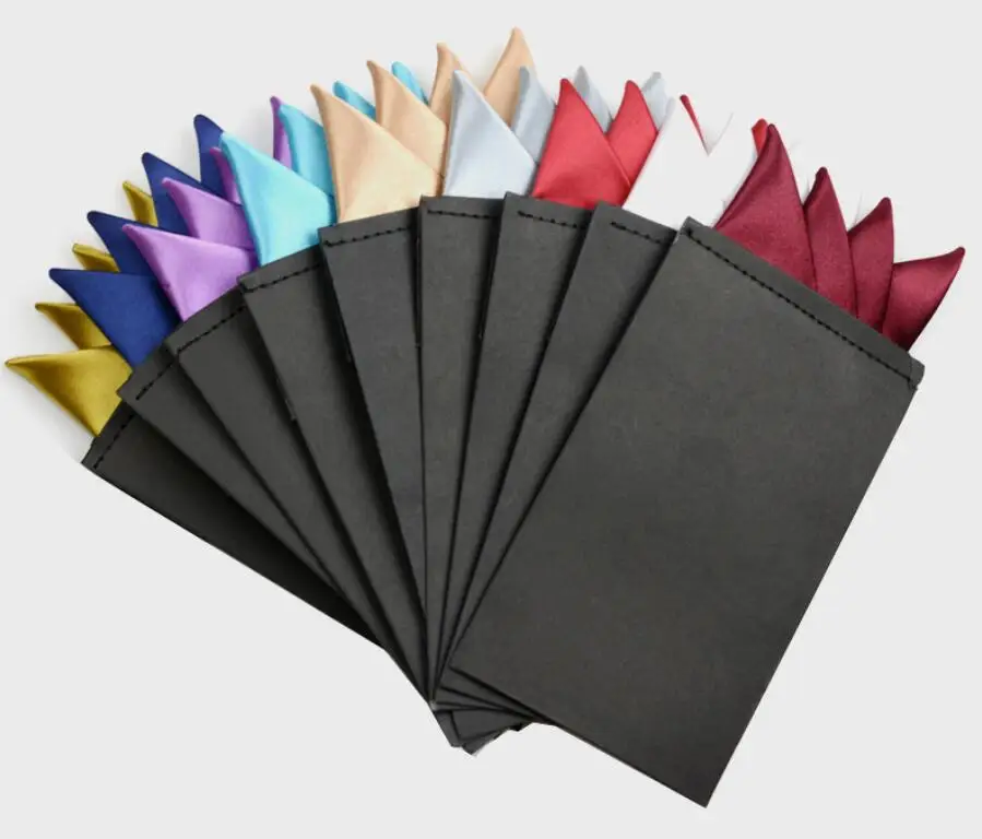 Синий узор в горошек однотонный деловой галстук с карманом и квадратными