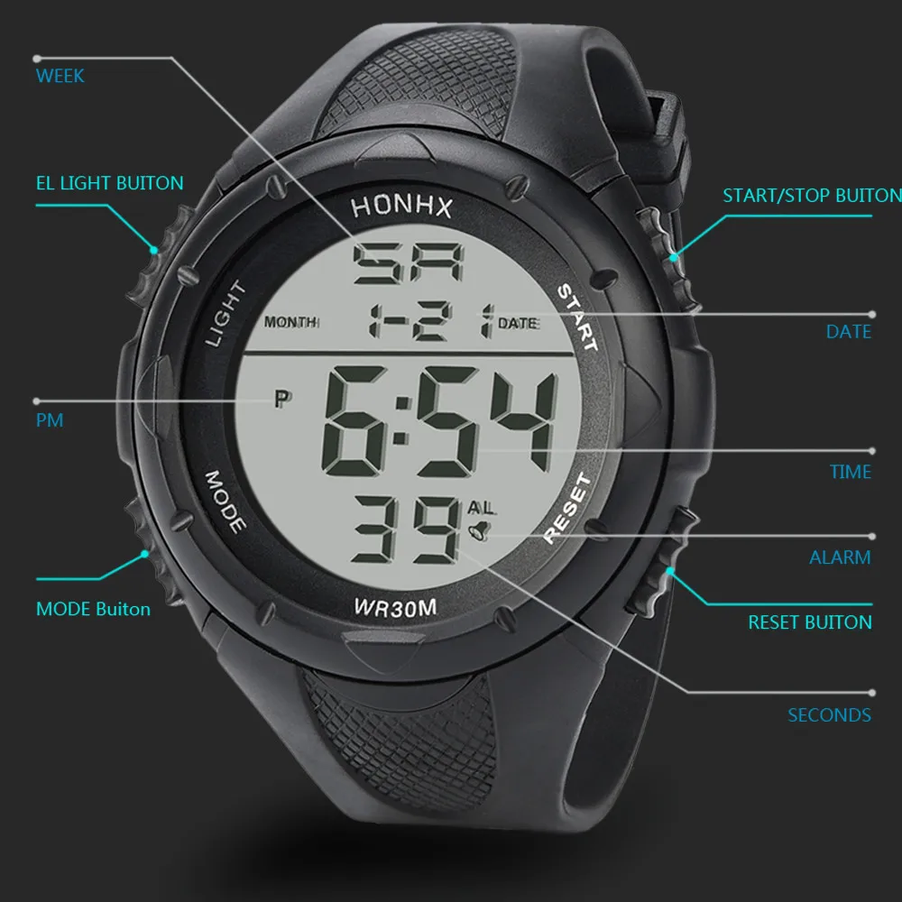 HONHX роскошный, мужские часы, водонепроницаемые, светодиодный, цифровой будильник, спортивные часы, силиконовые, военные, армейские кварцевые наручные часы, светящиеся часы, Новинка