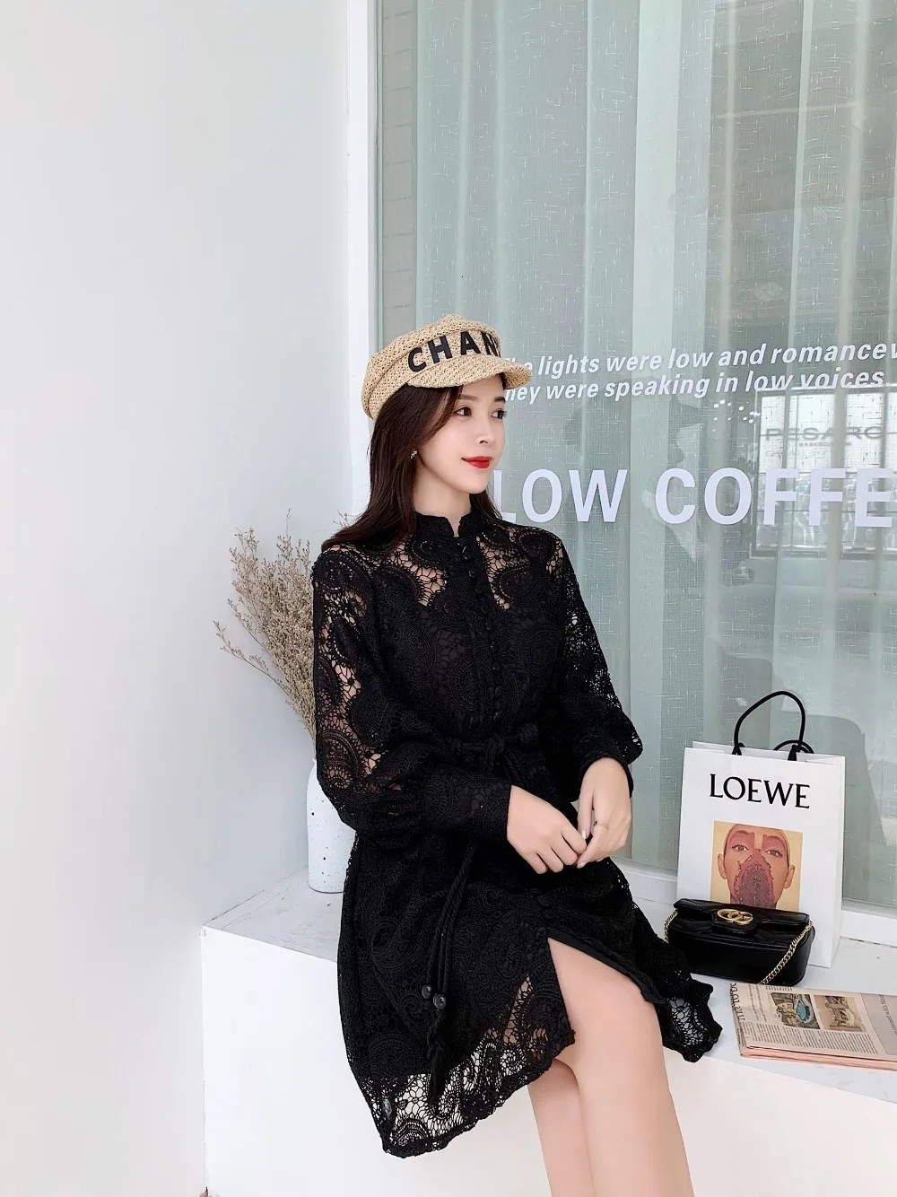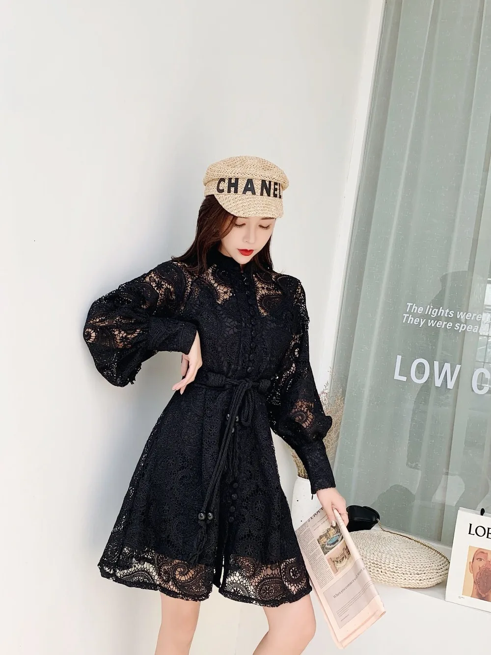 Женское Свободное длинное платье прозрачное черное свободное с коротким рукавом