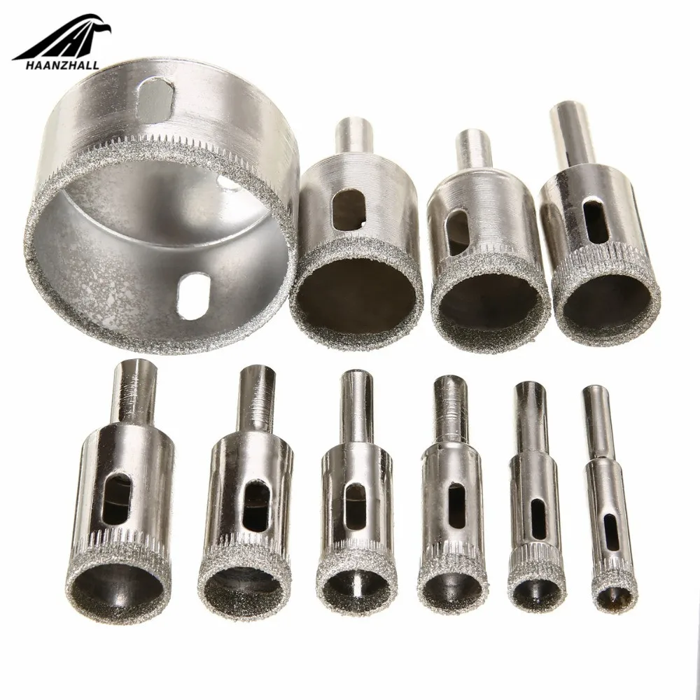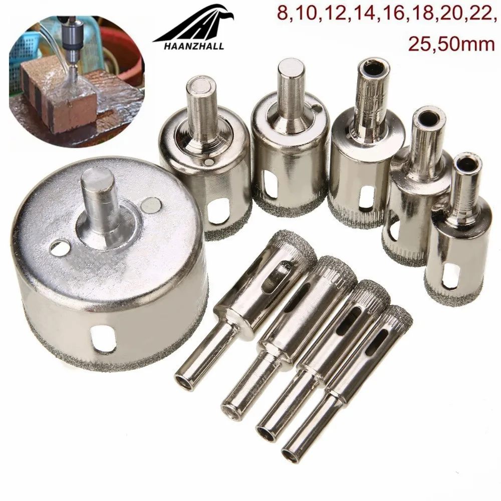 Параметры: Абсолютно новый Цвет: как на изображении Кольцевая пила Диаметр: 8 мм/0,31 ", 10 мм/0,39", 12 мм/0,47 ", 14 мм/0,55", 16 мм/0,63 ", 18 мм/0,71", 20 мм/0,79 ", 22 мм/0,87", 25 мм/0,98 ", 50 мм/1,97" Количество: 10 шт. в комплекте (10 разных размеров) Хорошая производительность и долгий срок службы Отлично подходит для изготовления чистого и точного отверстия на стекле и плитке Лучше работает с электрической дрелью (за исключением товара) Эти Алмазные биты способны сверлить в чрезвычайно твердые материалы, такие как камень и стекло. Используйте низкую скорость и правильное охлаждение, например, воды, чтобы Превосходная производительность-вырезайте отверстия в мраморе, сланце, стекле, плитке, камне и т. д. Отлично подходит для дома, хобби, ремесла, строительства и т. д.