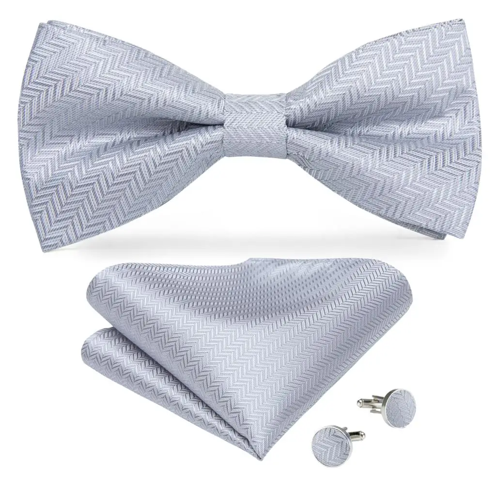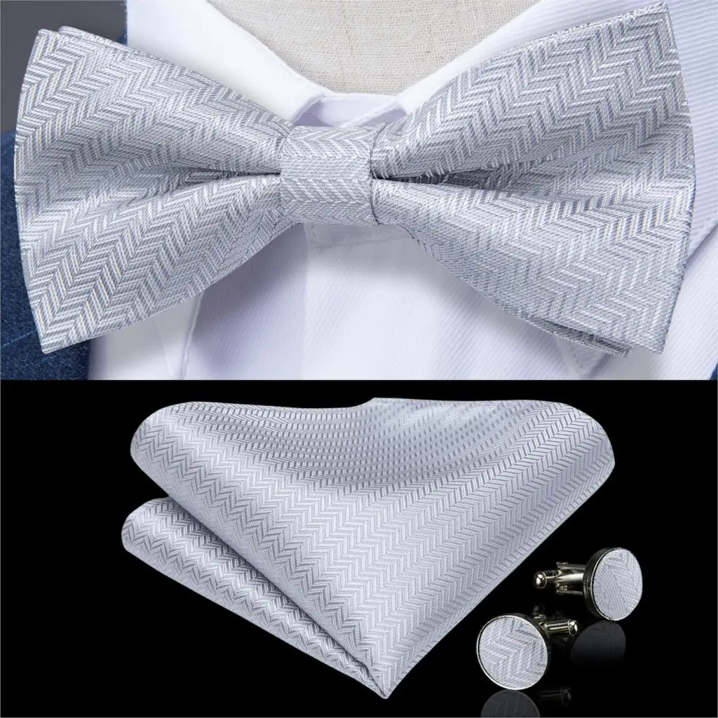 Серебряный однотонный дизайнерский галстук-бабочка для мужчин, шелковый галстук-бабочка, мужской галстук Hanky, запонки, костюм с воротником, съемный галстук, DiBanGu, LH-124
