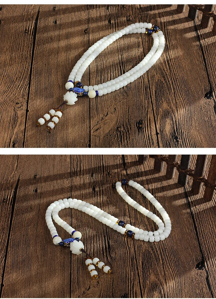 Белые семена Бодхи браслеты резной браслет с цветком лотоса или ожерелье для женщин мужчин обертывание браслет рудракша тибетские ювелирные изделия в стиле буддизма Лаки 108 Молитва Мала Бусы Strand браслет Размер бусин: 6 мм * 8 мм/7 мм * 9 мм/8 мм * 10 мм