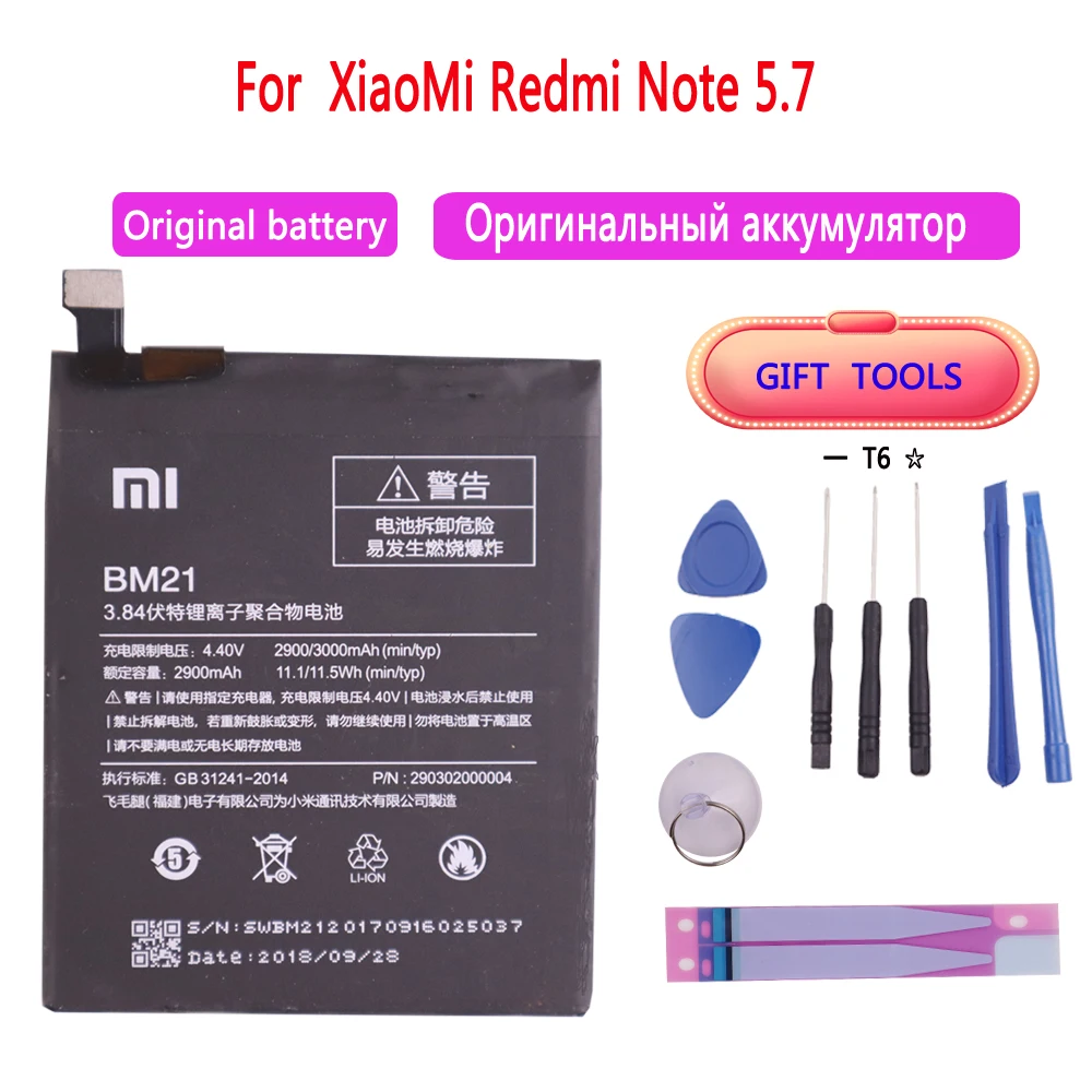 100% новая Оригинальная запасная батарея BM21 2900mAh для XiaoMi Redmi Note 5,7 Redrice аутентичная батарея для телефона