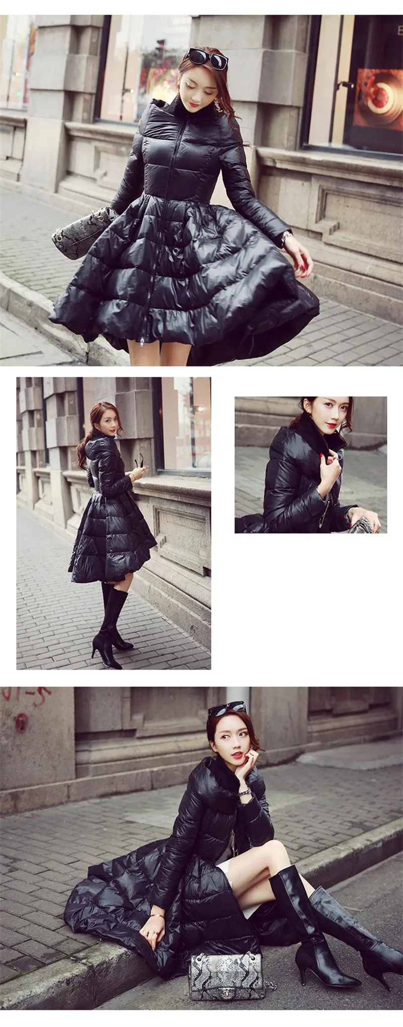 Зимняя куртка Женское пальто парка на утином пуху большой меховой воротник из