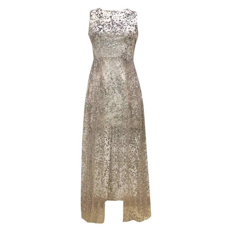 Женское сексуальное однотонное длинное платье без рукавов с блестками