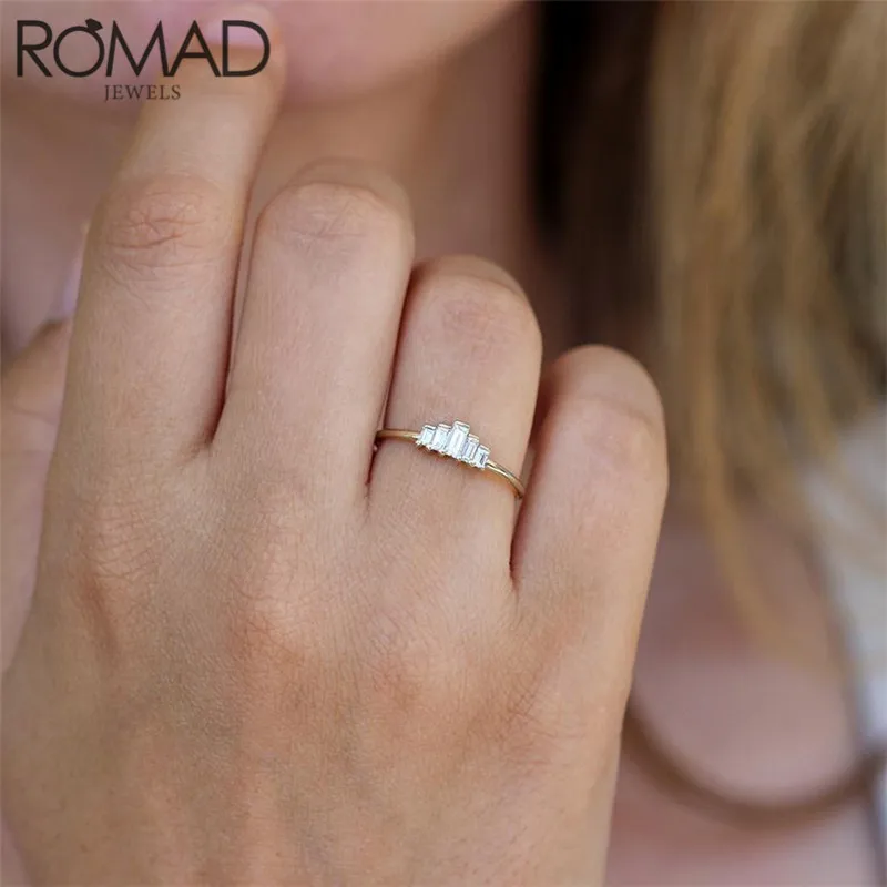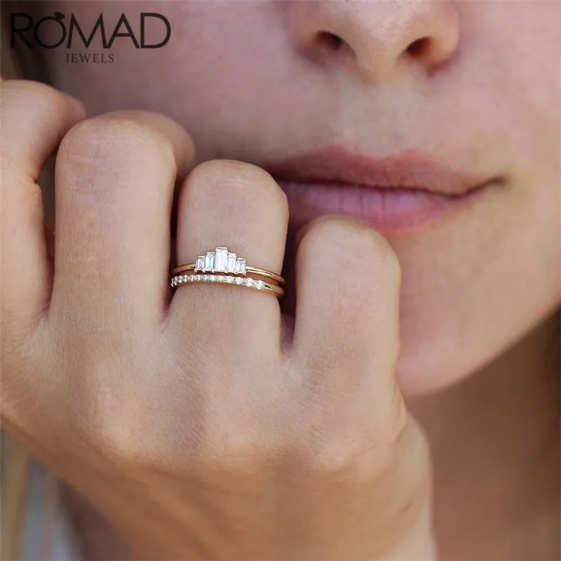 ROMAD изысканные Прямоугольник женские кольца с настоящими Австрийскими кристаллами для девочек простой кубический цирконий, геометрической формы кольцо обручальное парные кольца