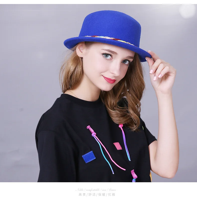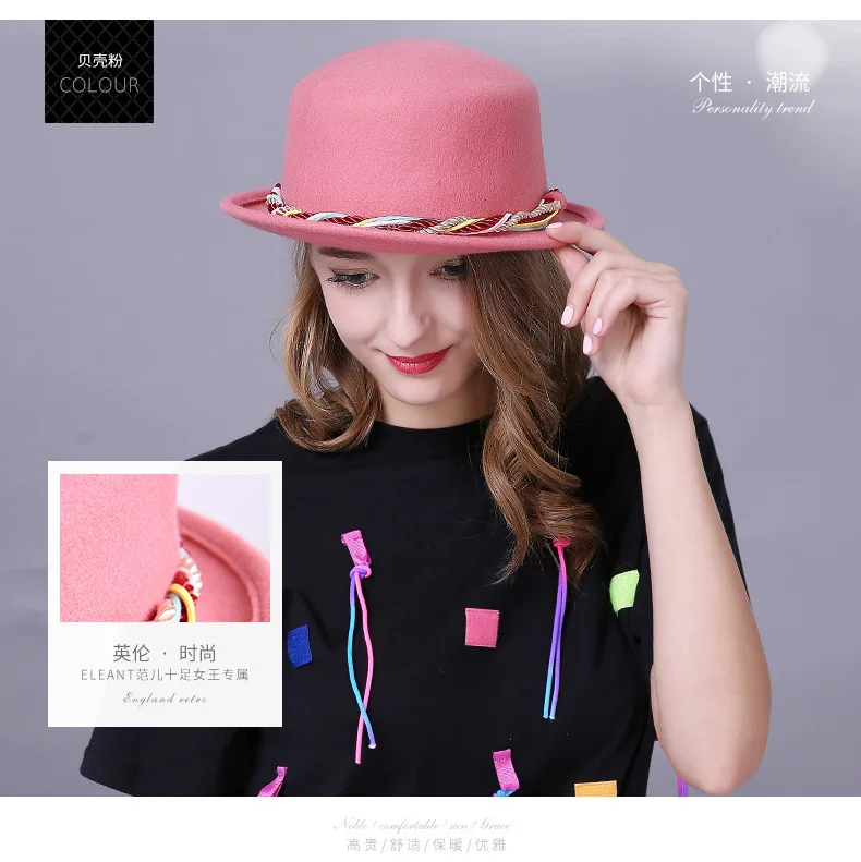 Шляпа фетровая женская с бантом из пеньковой пряжи элегантная Милая модная